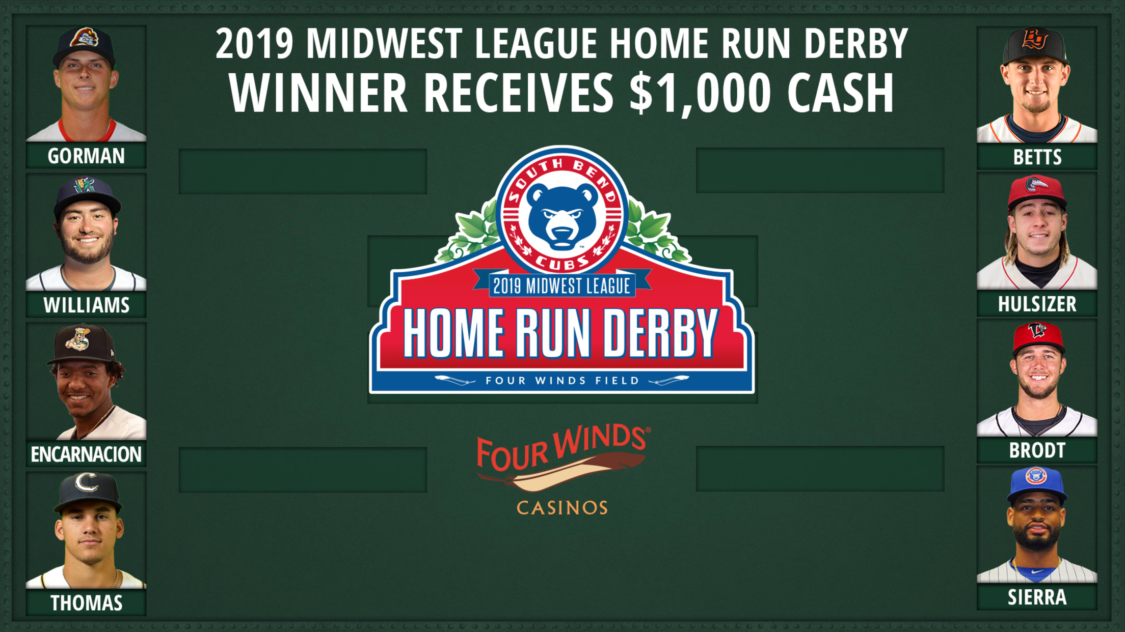 SOUTH BEND, IN - The Midwest League has officially announced the participants that will compete in the 2019 Home Run Derby at Four Winds Field on June 17. With the format set up in bracket style, four players from each division will be tested in the ultimate battle of power for a grand prize of $1,000 to the winner.