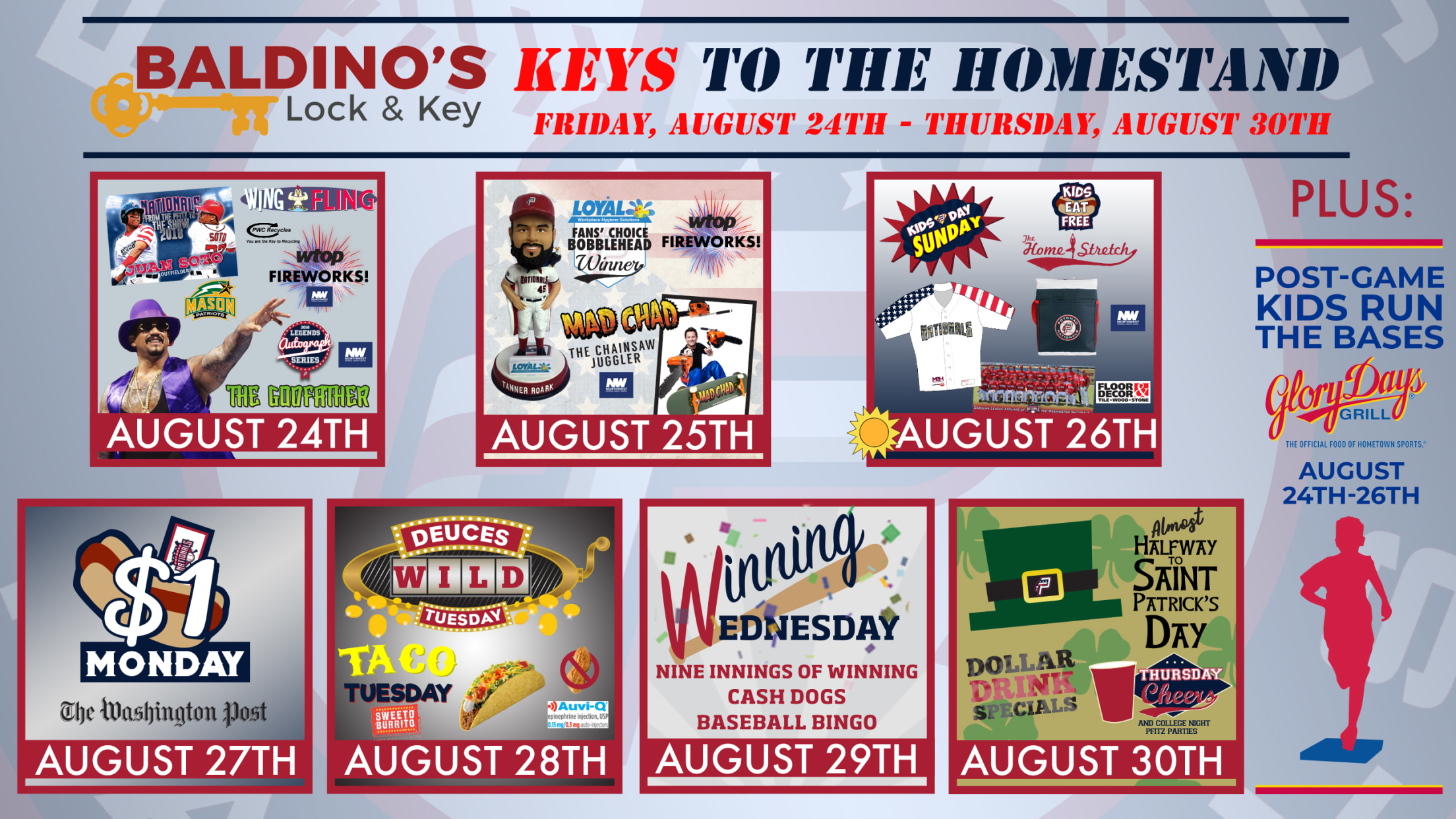 Baldino's Lock & Key Keys to the Homestand: August 24th - August 30th