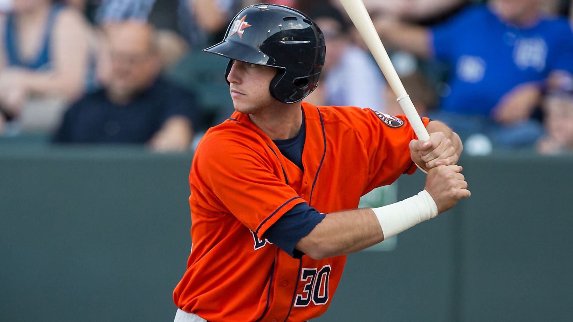 The Astros' No. 2 prospect hit a pair of solo homers Saturday in Class A Advanced Buies Creek's 8-4 loss to Myrtle Beach at Ticketreturn.com Field.