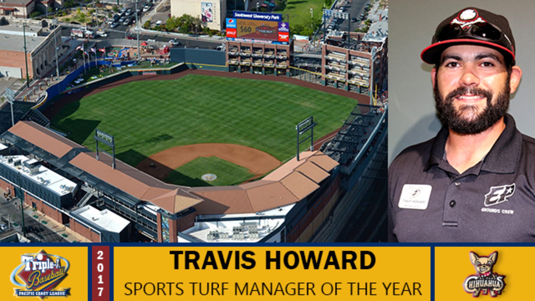 ROUND ROCK, Texas - Travis Howard, the first-year Head Groundskeeper of the El Paso Chihuahuas, is the recipient of the Pacific Coast League's 2017 Sports Turf Manager of the Year, President Branch B. Rickey announced Friday. Howard is the second El Paso groundskeeper to win the award, joining Andy Beggs in 2015.