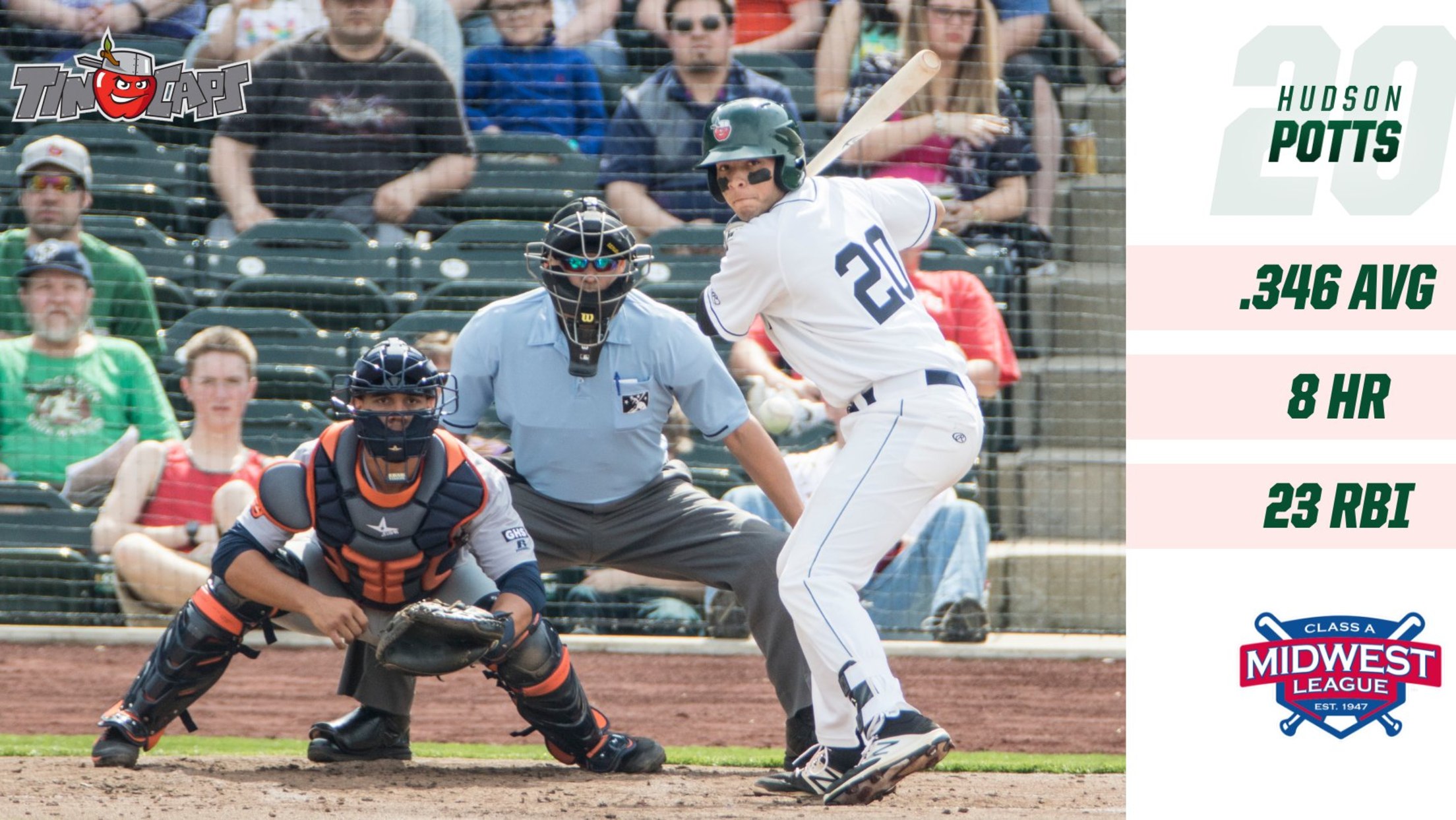 Potts is the first TinCaps to be named Midwest League player of the month sinceAustin Allen earned the honor in April 2016.