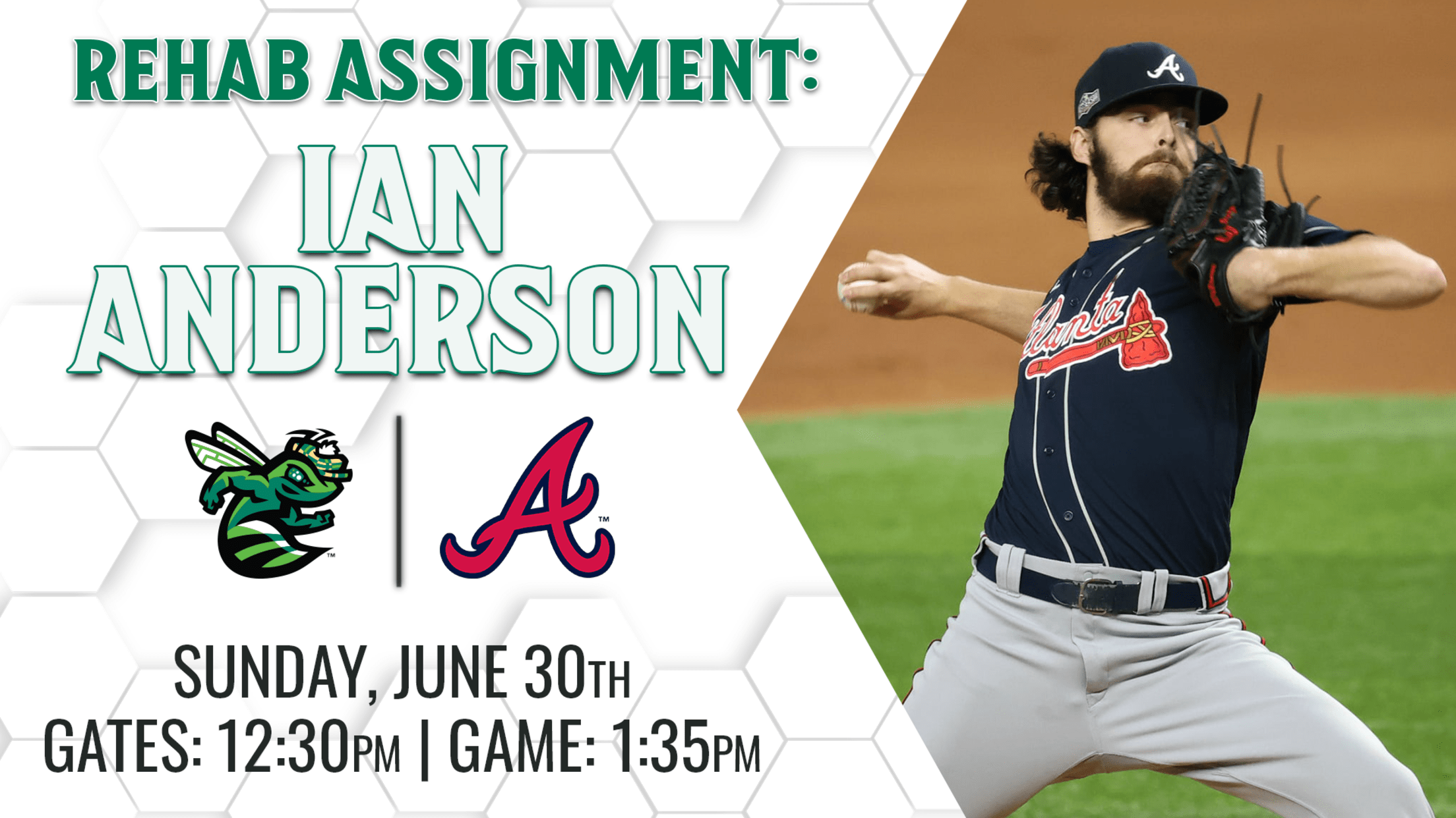 NORTH AUGUSTA, SC: Atlanta Braves starting pitcher Ian Anderson is set to continue his rehab assignment at SRP Park on Sunday, June 30th. The 2021 World Series champion is slated to be the starting pitcher for Sunday’s 1:35 contest against the Charleston RiverDogs.