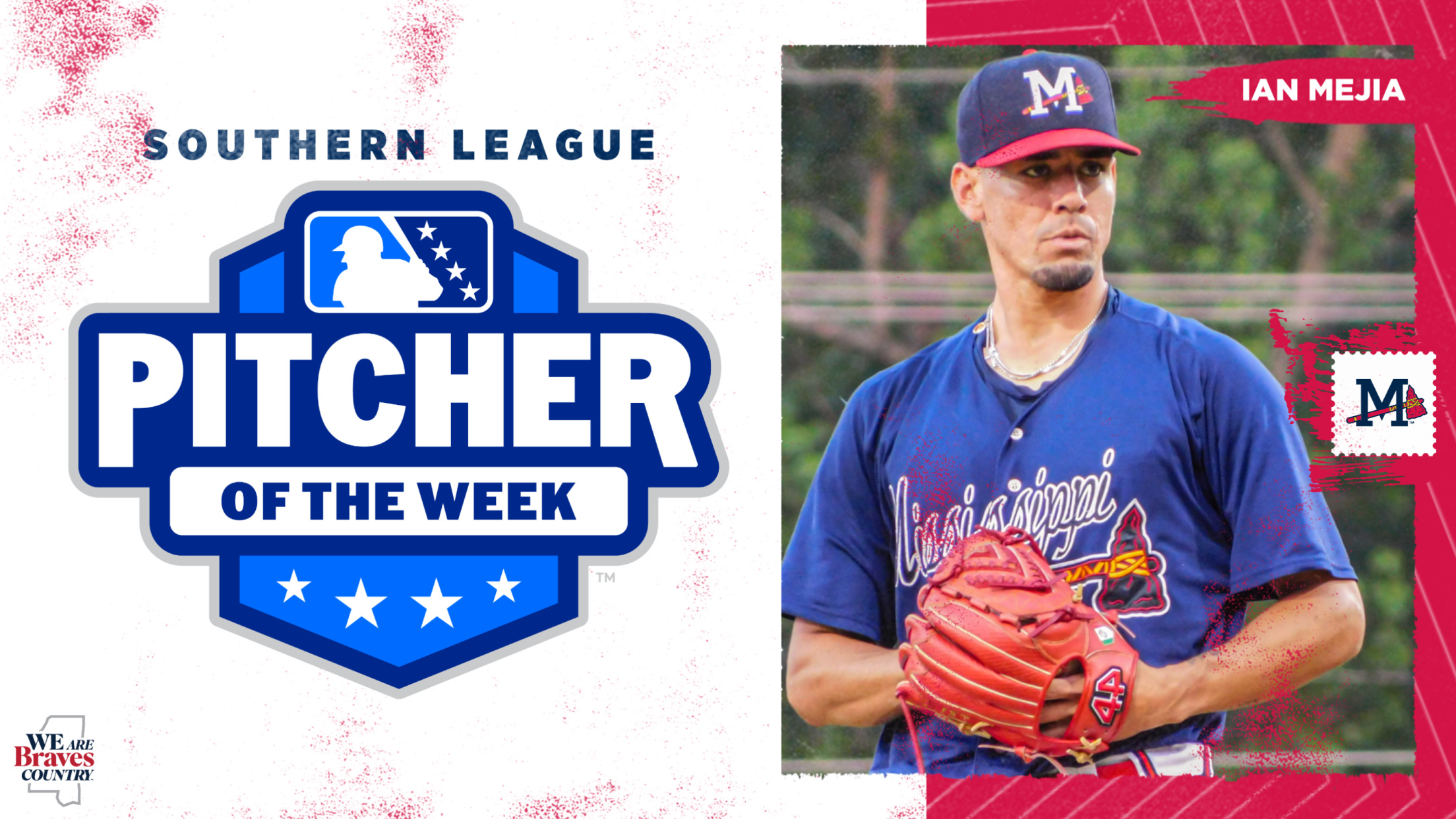 PEARL, MS (May 6, 2024) — Mississippi Braves right-handed pitcher Ian Mejia was named Southern League Pitcher of the Week, as announced Monday by Minor League Baseball.