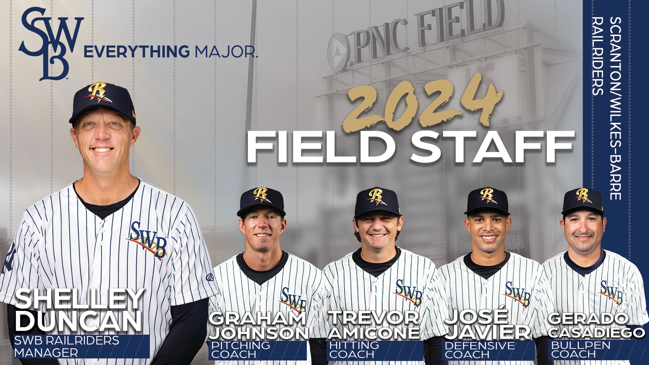 MOOSIC, PA (January 26, 2024) – The New York Yankees have announced the field staff for each of their minor league affiliates and the Scranton/Wilkes-Barre RailRiders are pleased to welcome Manager Shelley Duncan back to the dugout in 2024. Duncan will see the majority of his 2023 staff return, including Pitching Coach Graham Johnson, Hitting Coach Trevor Amicone, Defensive Coach José Javier and Athletic Trainer Jimmy Downam.