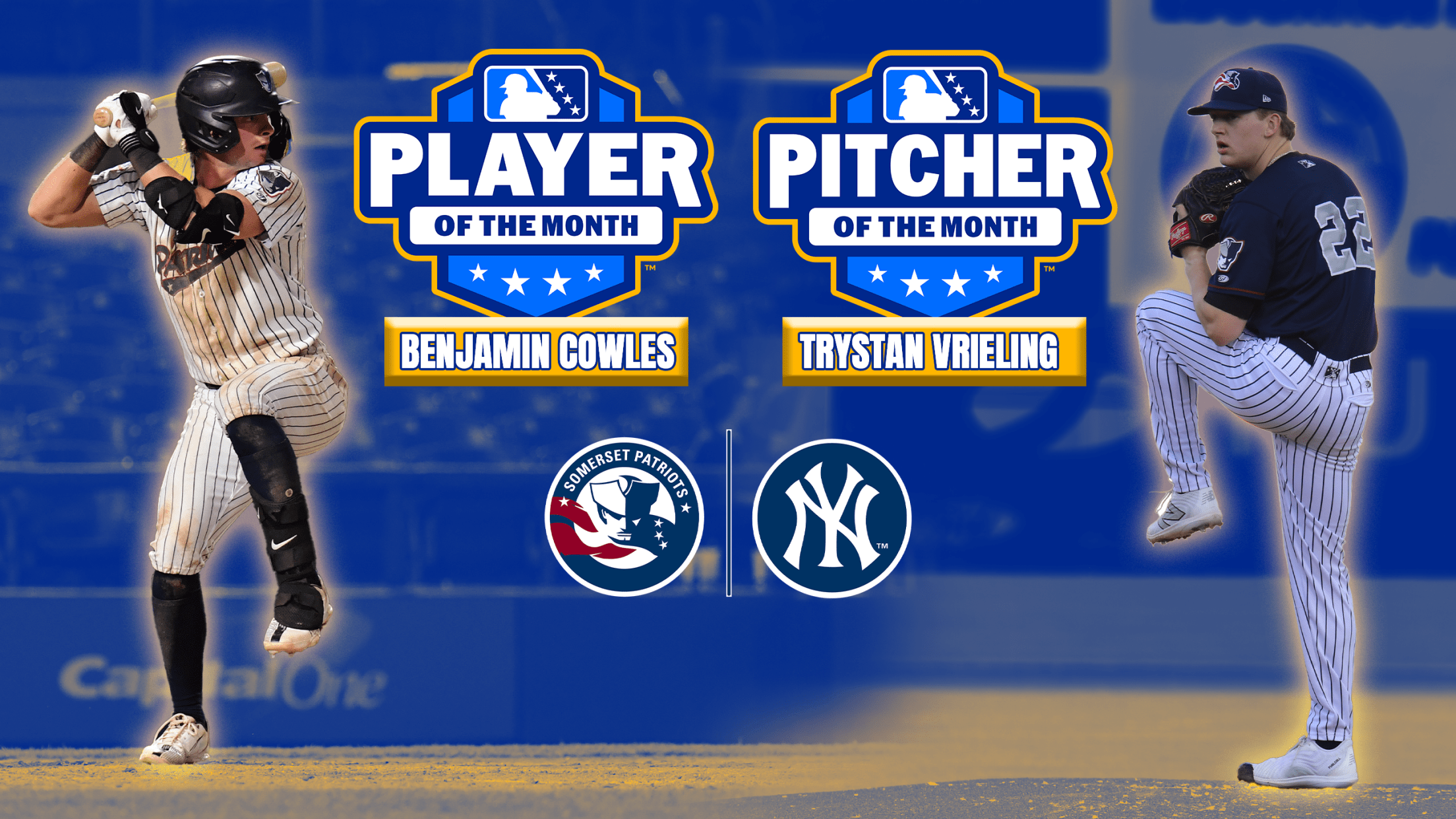 Bridgewater, New Jersey – Minor League Baseball has announced that Somerset Patriots INF Benjamin Cowles and RHP Trystan Vrieling have been named the Eastern League Player and Pitcher of the Month for April.