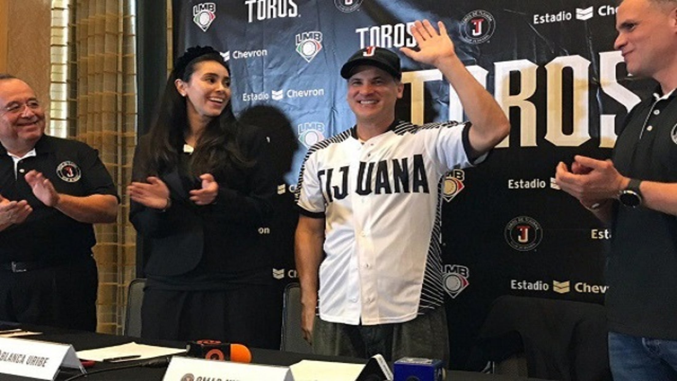En la rueda de prensa, el manejador caraqueño fue acompañado por Blanca Livier Uribe Díaz, vicepresidenta de Toros de Tijuana, Antonio Cano, director general, Óscar Romero, director deportivo y Arturo Marcano, director de operaciones internacionales.