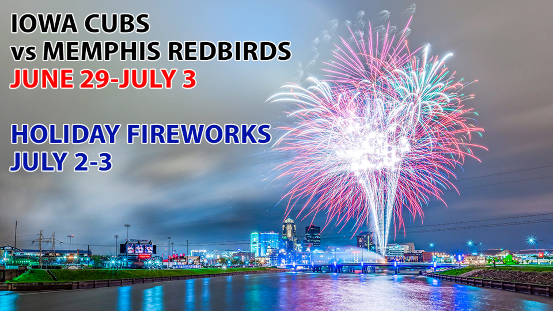 Start your Fourth of July celebration with a bang -- five games against the Memphis Redbirds ... and two great holiday fireworks shows, July 2 and 3. Have a blast this home stand with the Iowa Cubs!