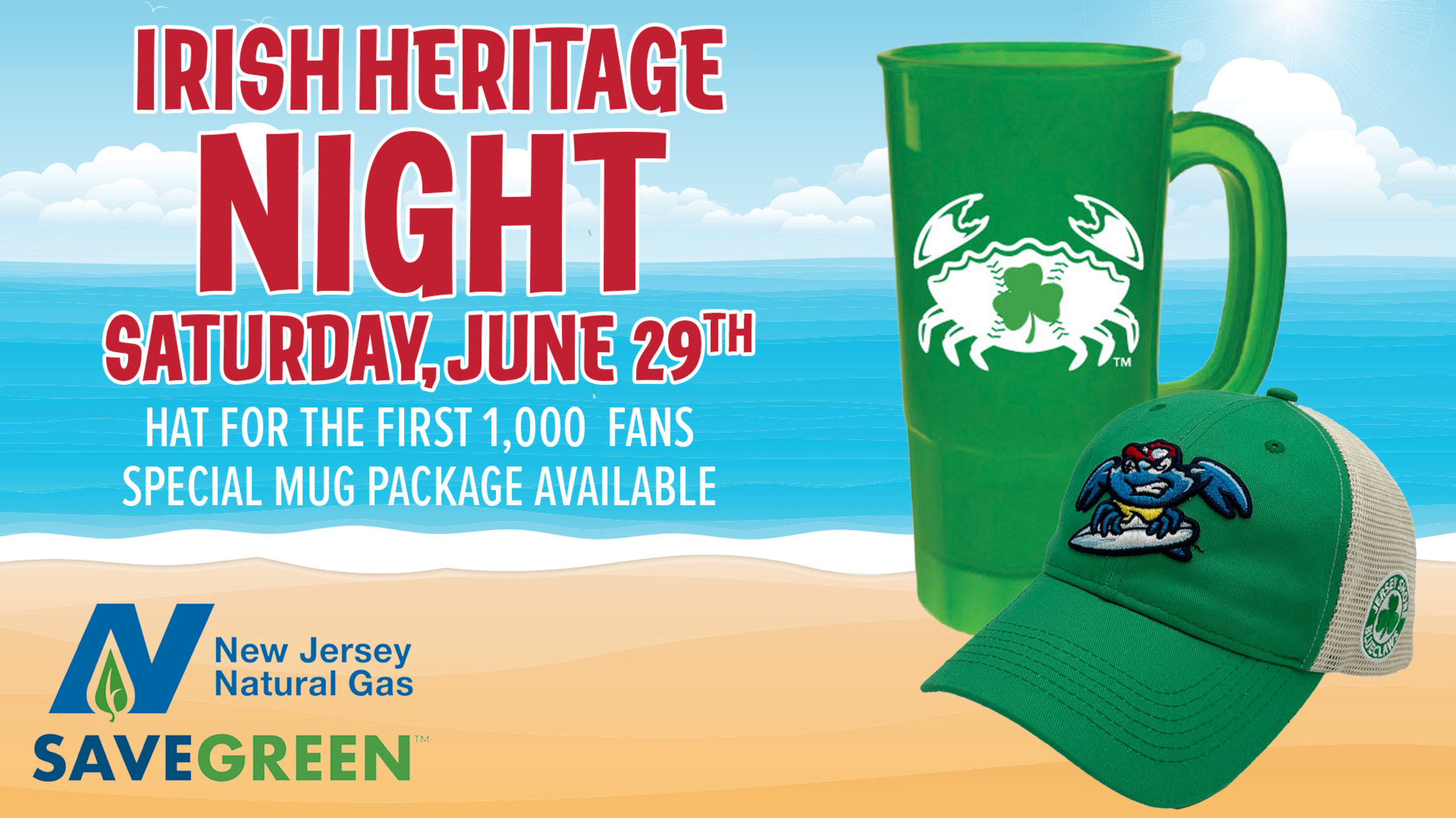 JERSEY SHORE, NJ - Ring in St. Patrick's Day weekend with your BlueClaws ticket & mug package for Irish Heritage Night, set for June 29th and presented by New Jersey Natural Gas.