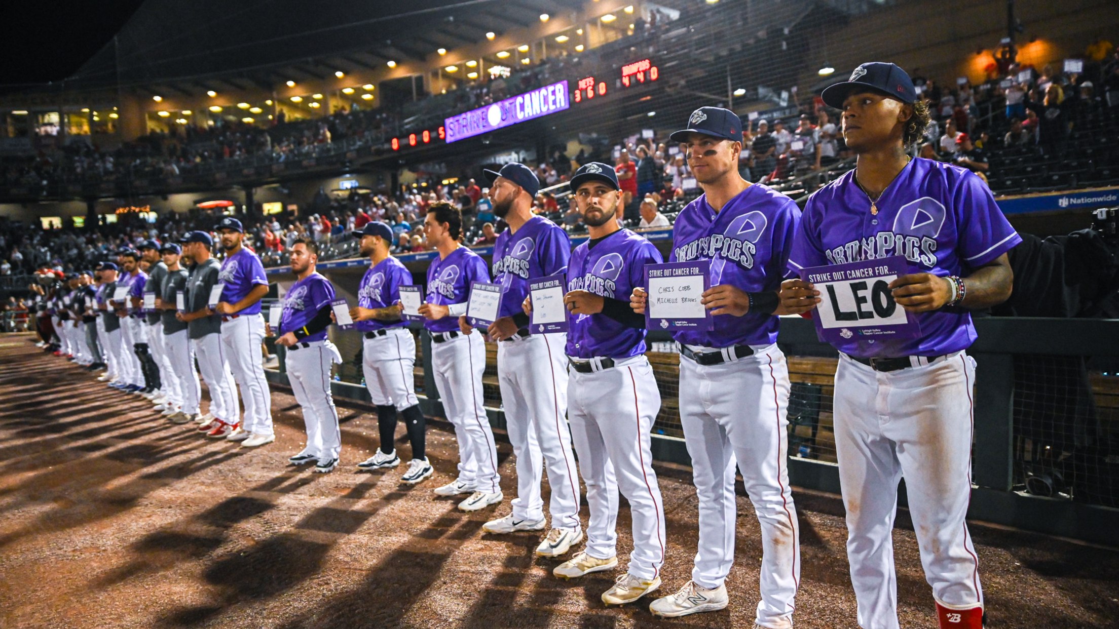 In addition to fundraising via merchandise sales, the 50/50 raffle and jersey auctions, the IronPigs hosted a poignant moment of silence mid-game with everyone in attendance holding up Strike Out Cancer placards with the name of someone close to them who had been affected by cancer. The IronPigs also hosted hundreds of cancer survivors - and those who help to fight the disease daily - as sponsors helped the team provide complimentary tickets to those impacted to enjoy the game.