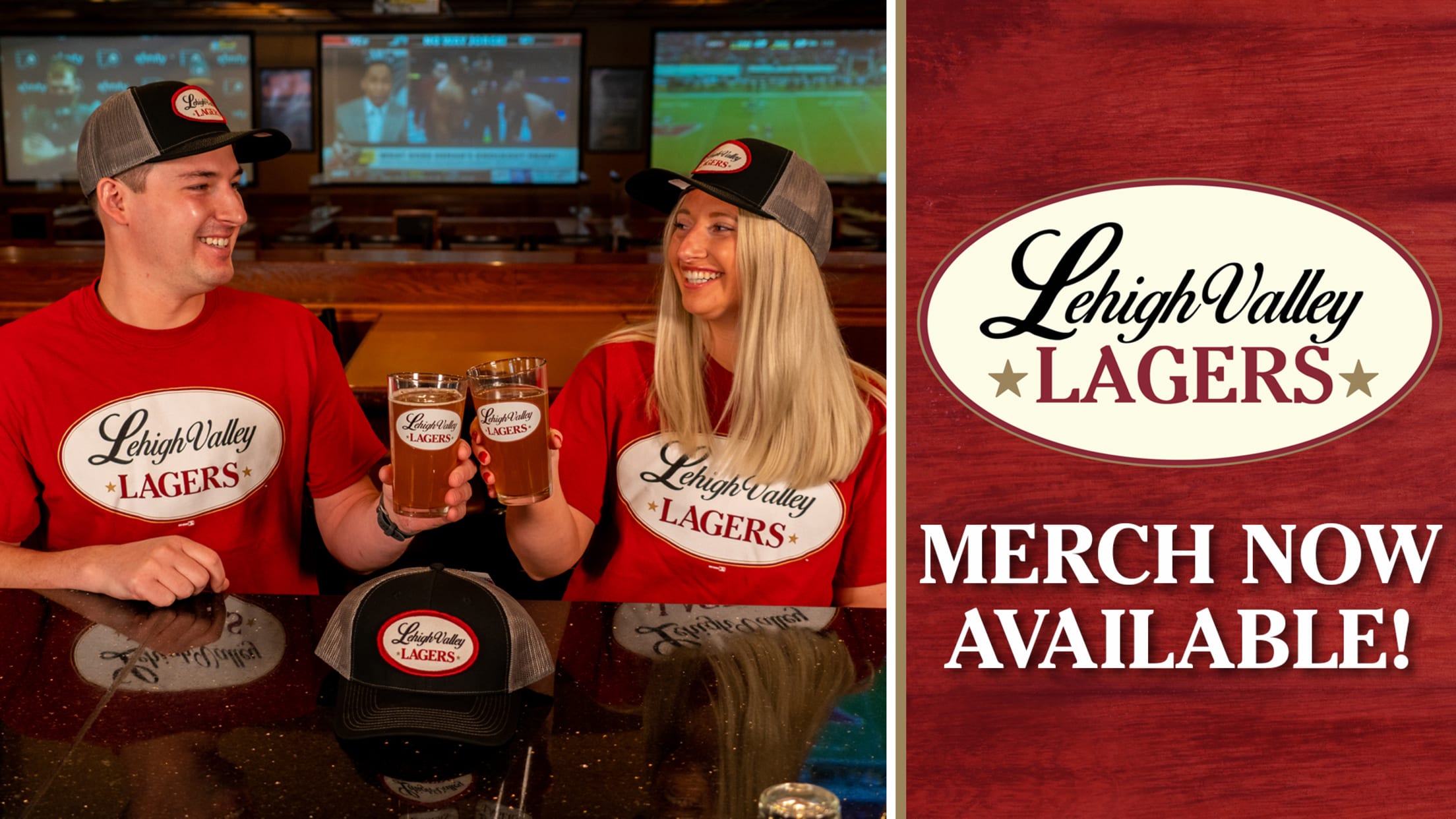 Lehigh Valley Lagers merchandise such as adjustable trucker caps, t-shirts, and pint glasses are now available for purchase at shopironpigs.com and in person at The Clubhouse Store.