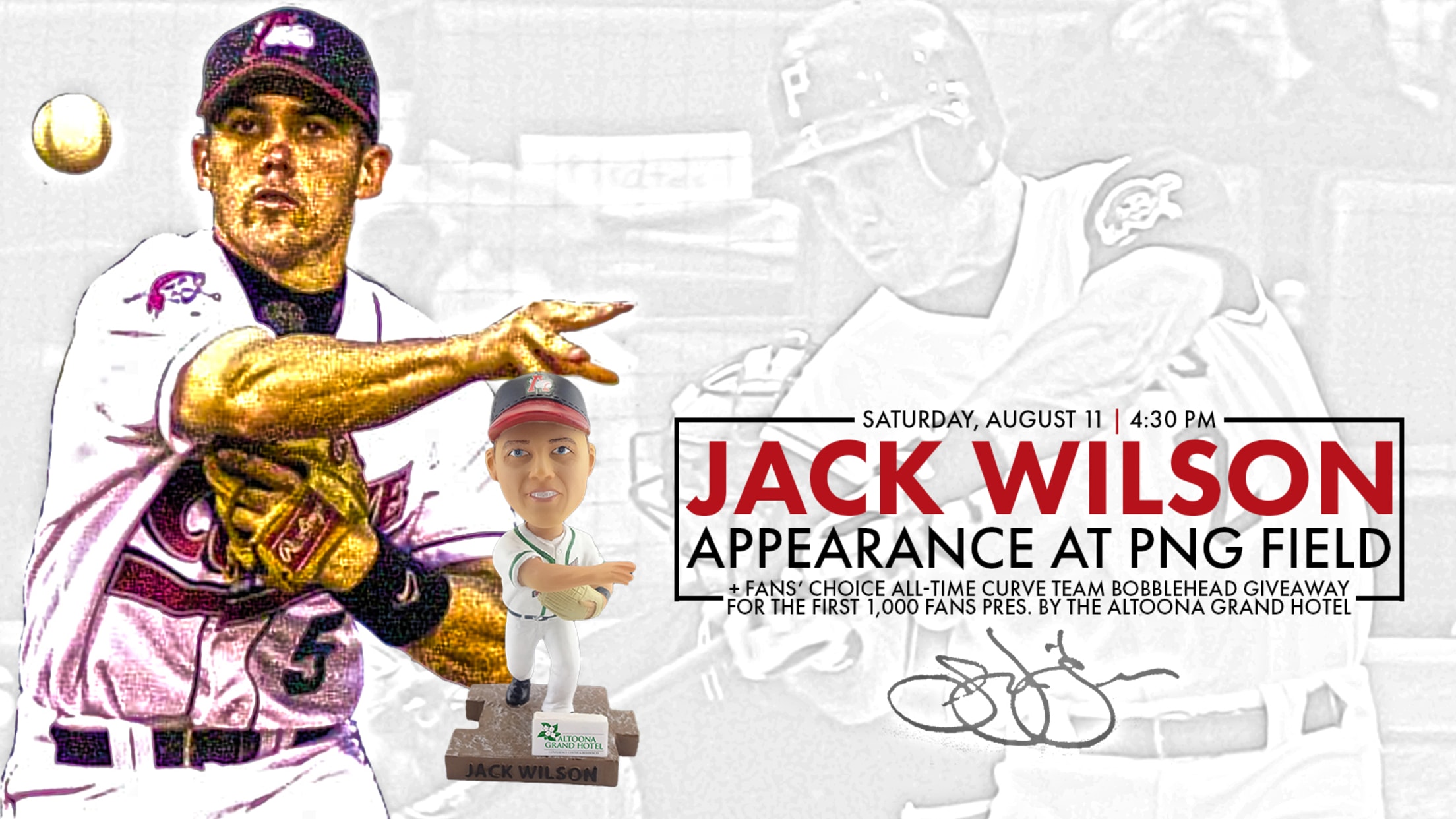 CURVE, Pa. - Former Altoona Curve shortstop and National League All-Star Jack Wilson will make an appearance at Peoples Natural Gas Field on Saturday, August 11 on his bobblehead giveaway night, the Curve announced on Thursday.