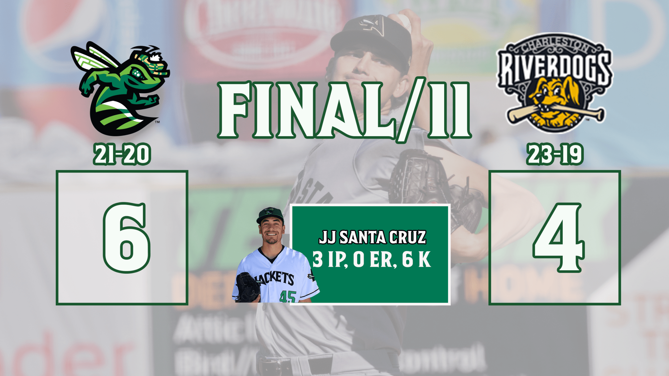 Charleston, SC: After the series opener on Friday took 10 innings at Joseph P. Riley Jr. Stadium in Charleston, South Carolina, the GreenJackets (21-20) and Charleston RiverDogs (23-19) topped that on Saturday by playing 11-innings for four hours and two minutes. The Jackets end up winning it 6-4 as Charleston