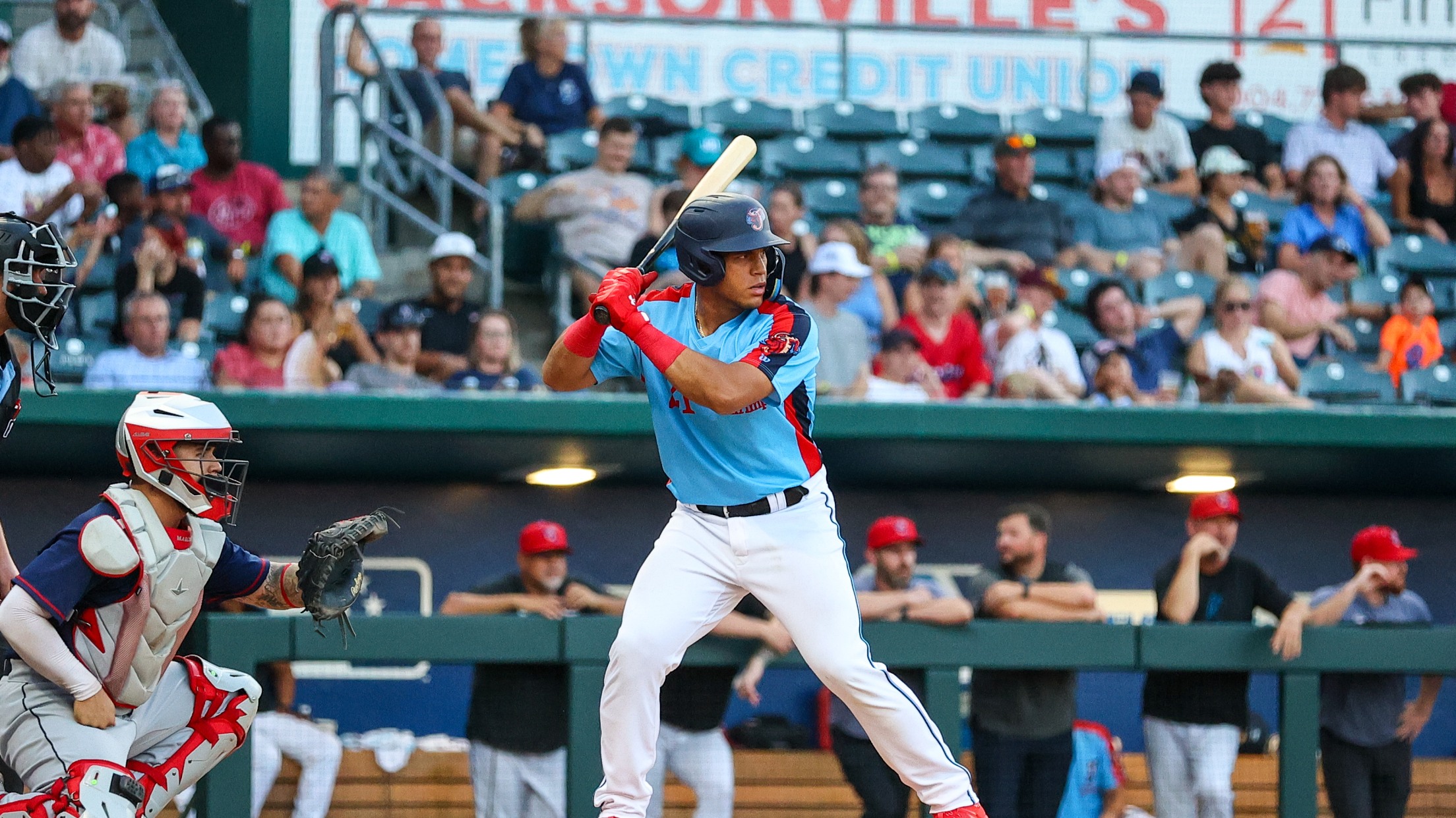 TOLEDO, OH. – Thanks to six combined hits from Agustín Ramirez and Forrest Wall, the Jacksonville Jumbo Shrimp beat the Toledo Mud Hens 6-3 Thursday night at Fifth Third Field.