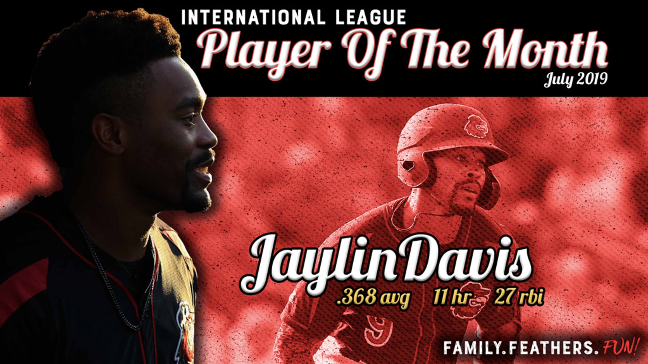 Former Rochester Red Wings outfielder Jaylin Davis has been named the International League Player of the Month for July, Minor League Baseball announced Tuesday.