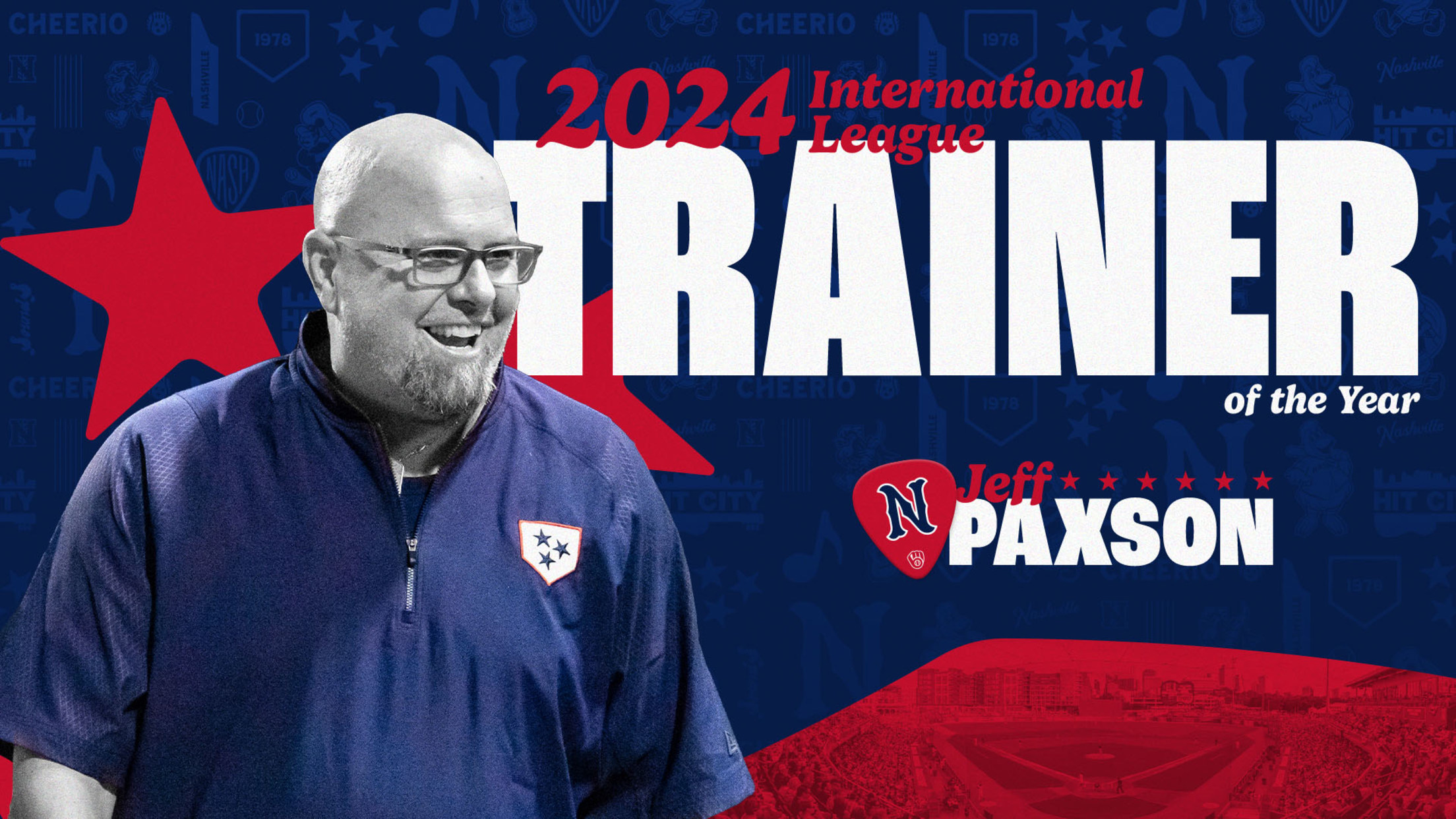 NASHVILLE – Nashville Sounds Athletic Trainer Jeff Paxson has been named the International League’s Athletic Trainer of The Year for the second straight season. Paxson, in his eighth season (3rd consecutive) with Nashville, was recognized by the Professional Baseball Athletic Trainers Society (PBATS) earlier this week.