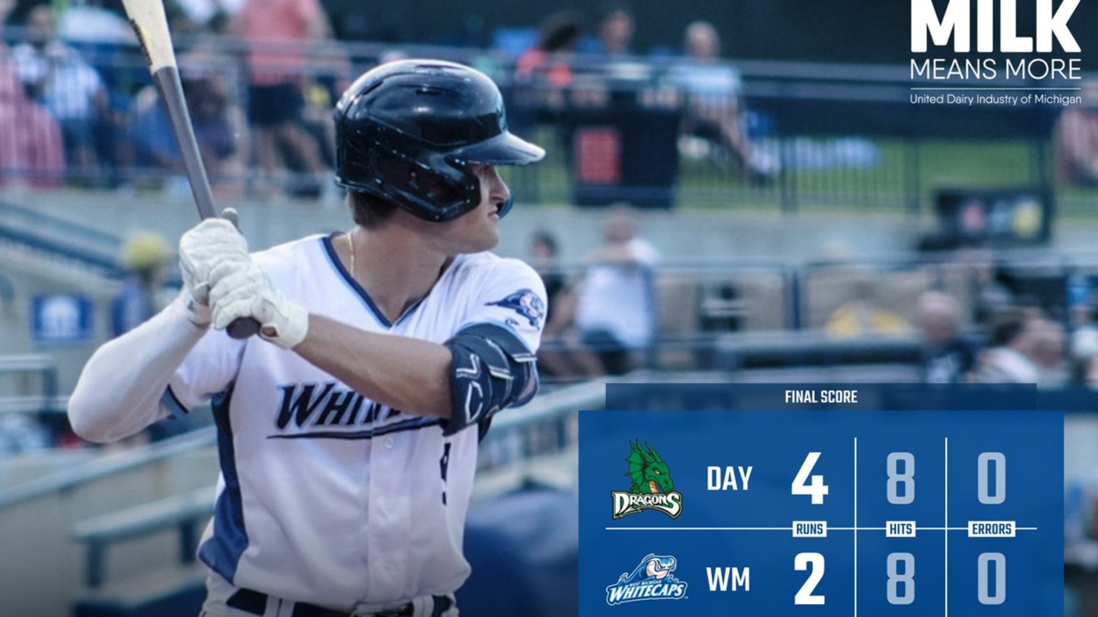 The Dragons grabbed the lead in the second inning as shortstop Leo Balcazar added an RBI groundout before first baseman Cade Hunter roped an RBI double into center field, putting Dayton on top 2-0. Meanwhile, Dragons starter Gabriel Aguilera was impressive, pitching five scoreless innings while allowing just two hits and striking out five ‘Caps hitters as a sacrifice fly by outfielder Carlos Jorge in the fourth and a solo home run from Logan Tanner in the fifth stretched their lead to 4-0. West Michigan finally responded in the bottom of the seventh as catcher Josh Crouch added an RBI groundout before Dom Johnson struck for an RBI single but was thrown out trying to advance to third, trimming the lead to 4-2. The game’s final moments were tense, with the Whitecaps bringing the potential go-ahead run to the plate in the bottom of the ninth, but outfielder Seth Stephenson lined out to left fielder Ethan O’Donnell-ending the threat and delivering West Michigan the 4-2 loss.