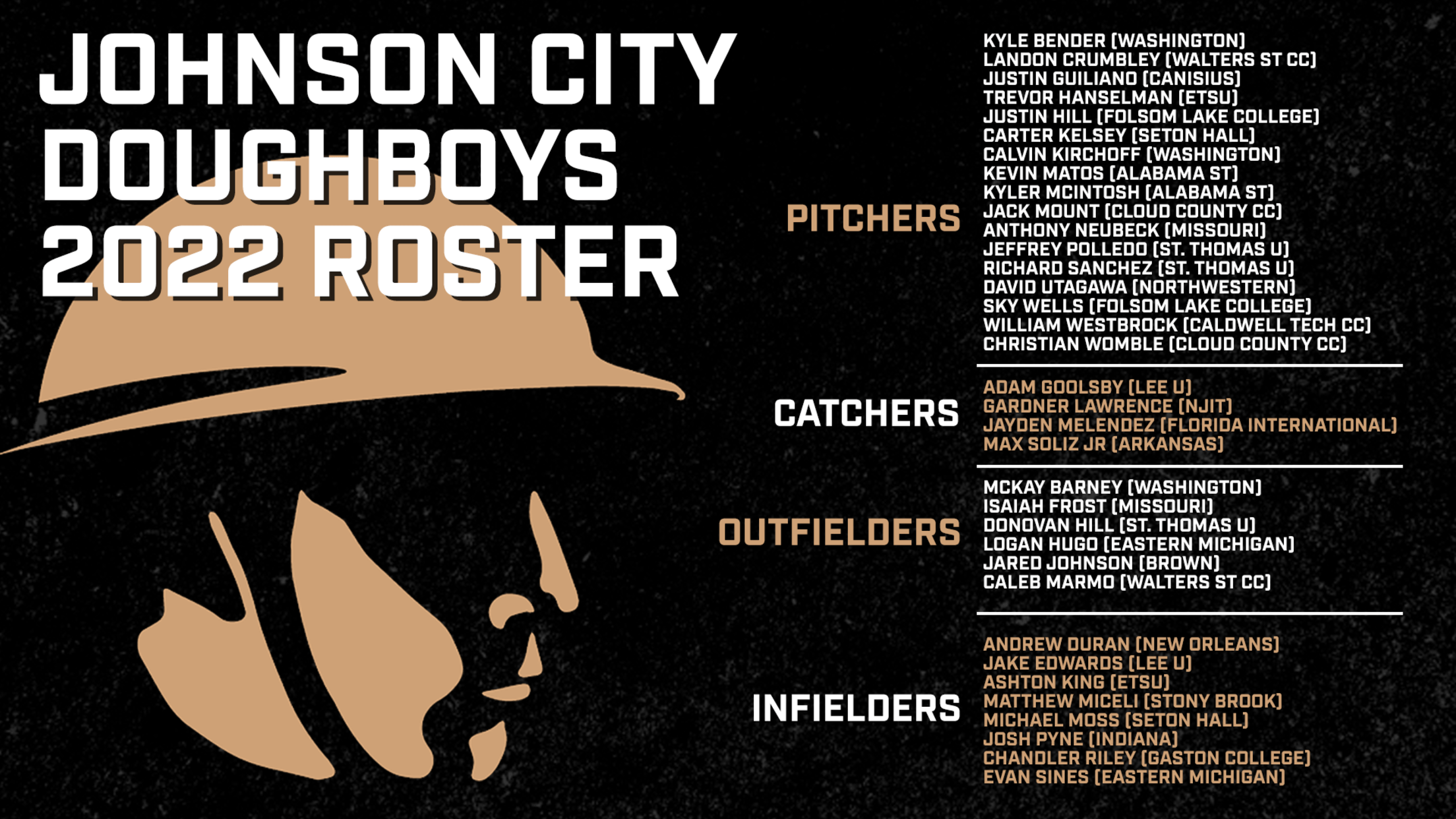 “I am very excited about the roster of players we were able to assemble for the 2022 season,” said Johnson City Doughboys manager Kevin Mahoney. “This group of players have a ton of talent on both sides of the baseball. I am very proud of the effort of the staff to put this roster together and give the 2022 Doughboys a chance to compete for the Appalachian League championship. I couldn’t be happier to have the privilege to watch these young men compete and grow as baseball players and individuals.”