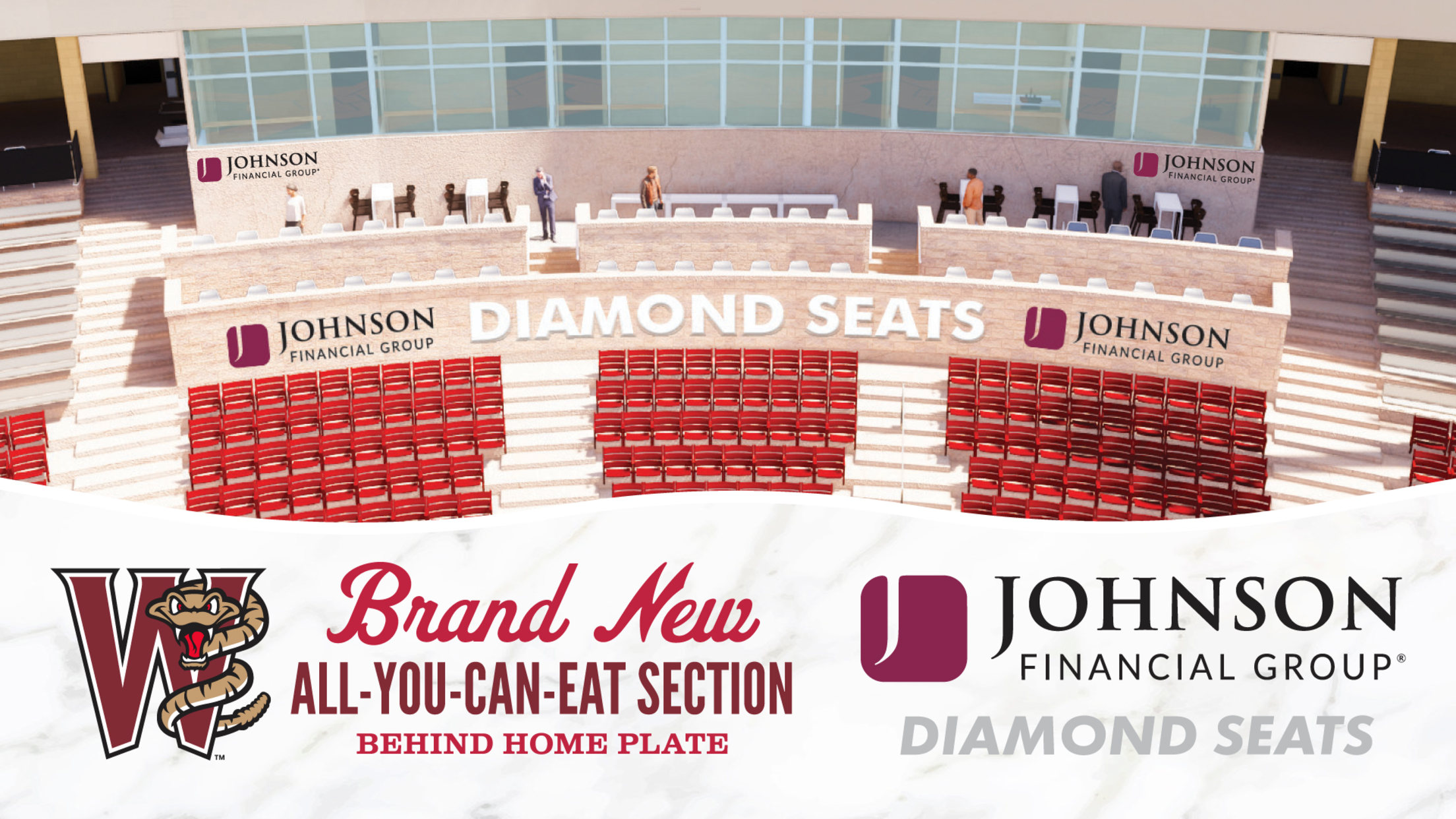 “The Johnson Financial Group Diamond Seats will provide a unique, all-inclusive experience just behind home plate,” said Timber Rattlers Vice President of Business Operations, Ryan Moede. “We are excited to partner with Johnson Financial Group and bring this new seating option to individuals and groups for the 2023 season and beyond!”