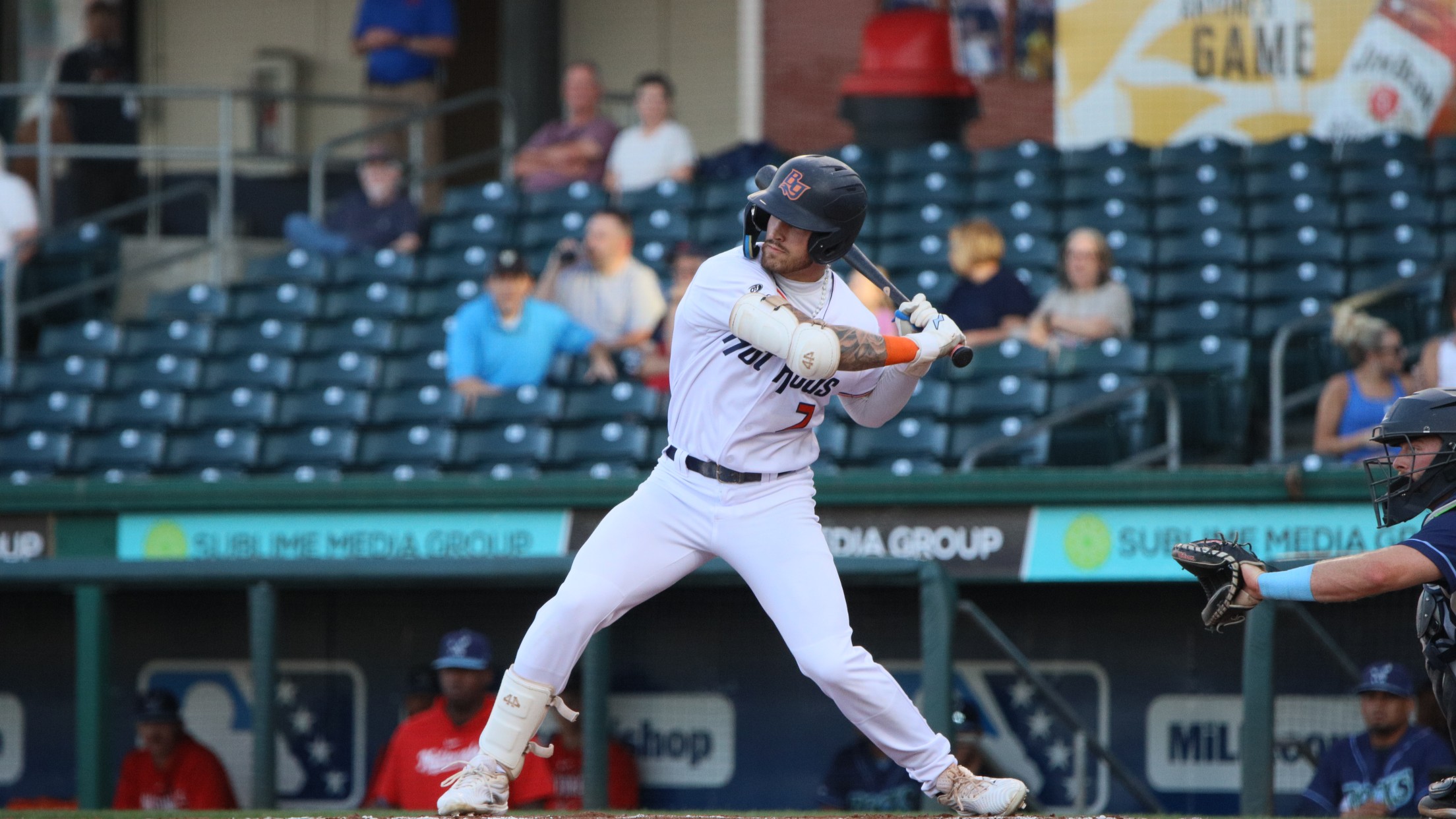 Bowling Green, Kentucky – Brock Jones clobbered his 17th home run of the season in the Bowling Green Hot Rods (27-14, 63-44) 8-1 victory over the Greensboro Grasshoppers (23-20, 62-46) on Tuesday from Bowling Green Ballpark.