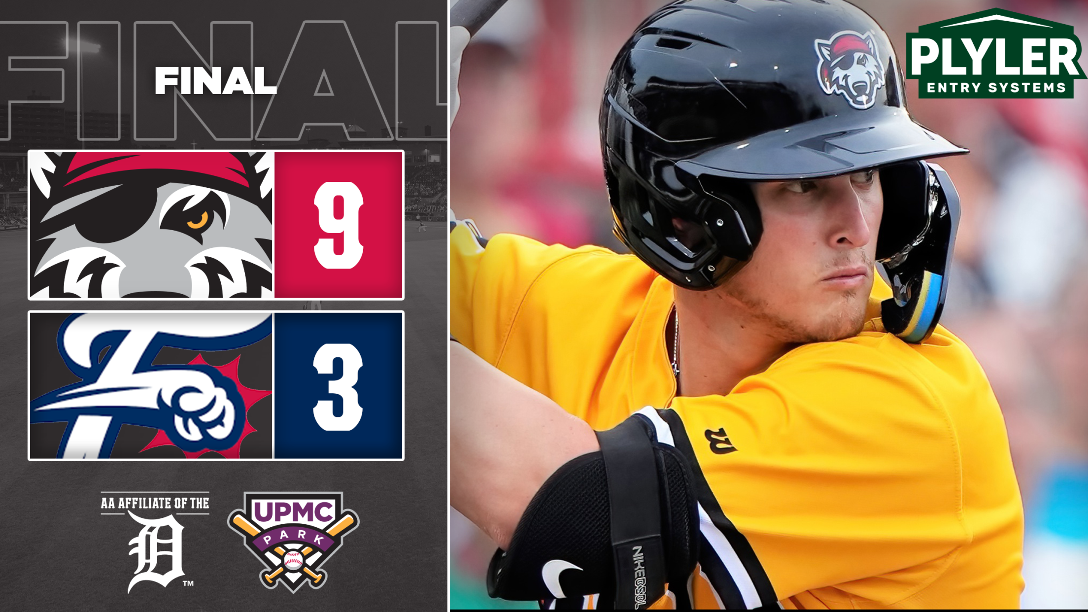 Erie tacked on two runs in the eighth on RBI singles by Workman and Meyers, extending the lead to 9-3.