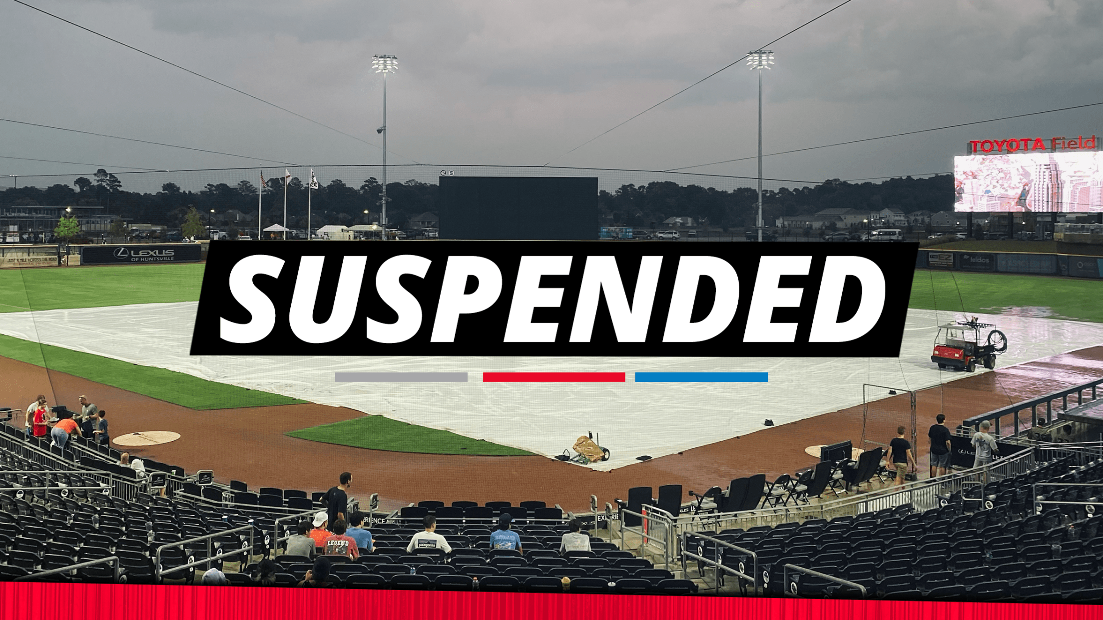 Sunday night’s game between the Rocket City Trash Pandas and Tennessee Smokies was suspended in the bottom of the second inning due to rain.