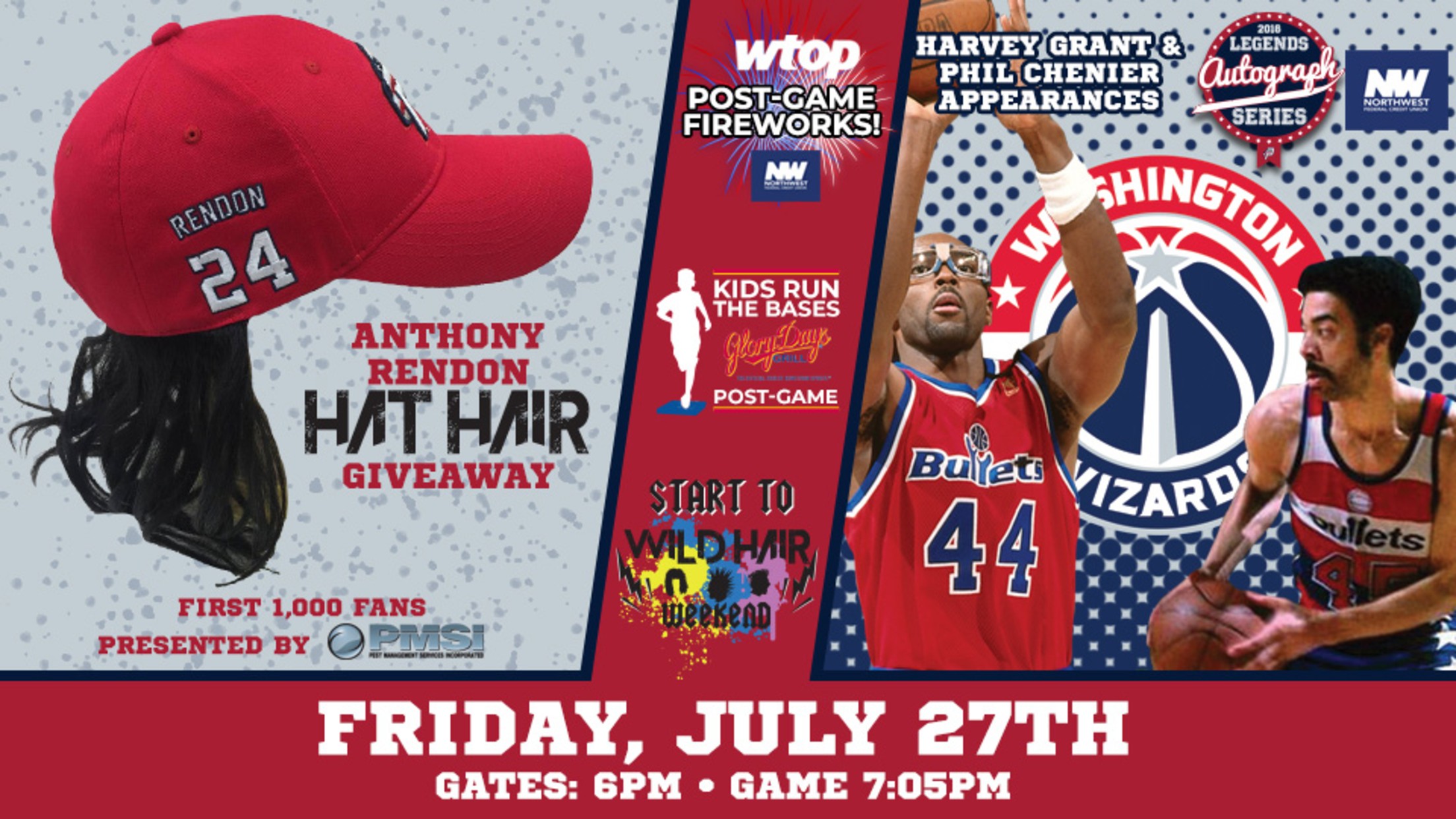 P-Nats Set to Host Washington Wizards Night with Phil Chenier and Harvey Grant, Anthony Rendon "Hat Hair" Giveaway on Friday, July 27th at Northwest Federal Field at Pfitzner Stadium