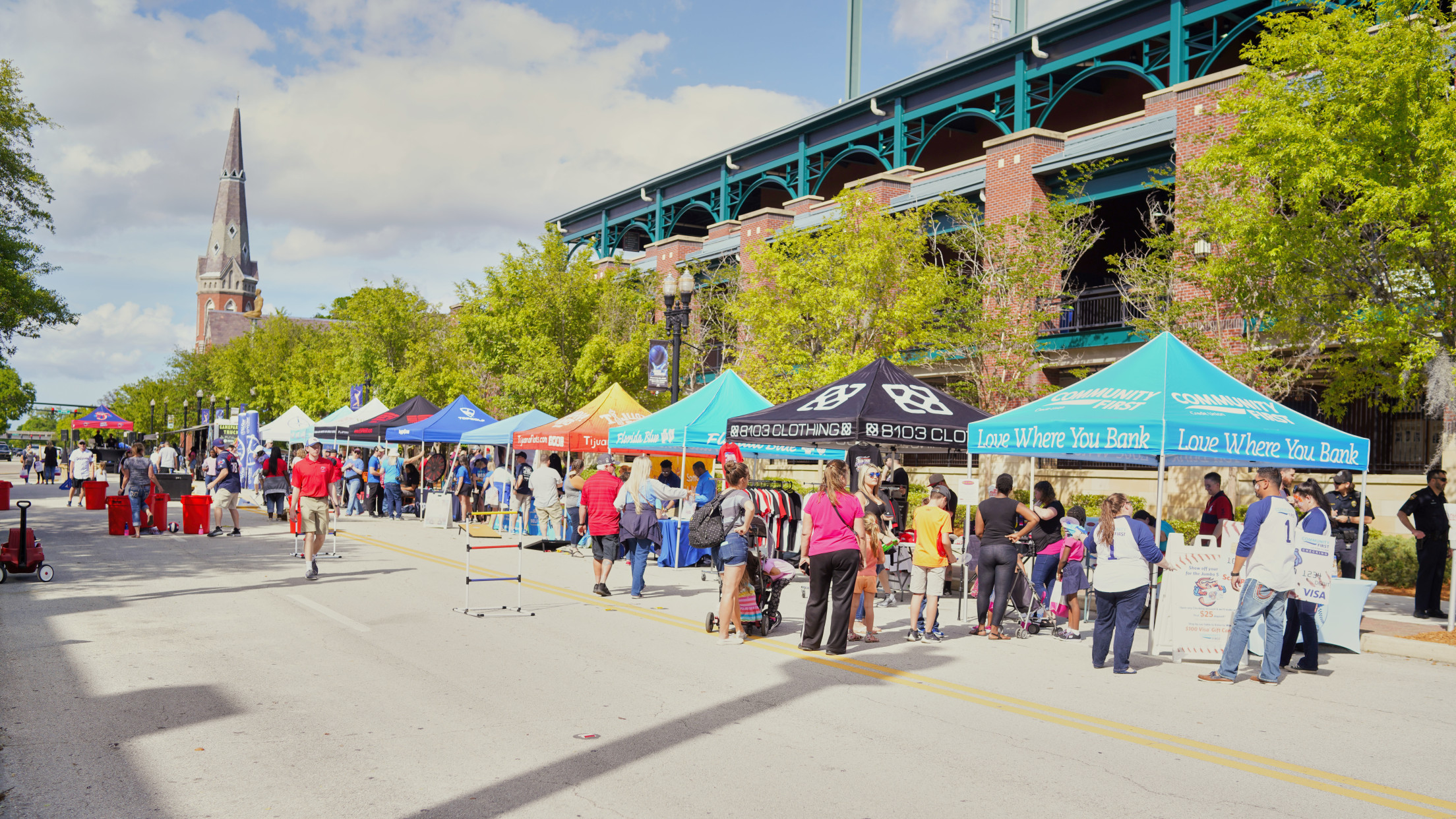A. Philip Randolph Blvd will be completely closed off on the block between the ballpark and VyStar Veterans Memorial Arena for several attractions, including a climbing wall, street games and interactive vendor booths. A DJ and local high school drumline will provide music on-site for the festivities.