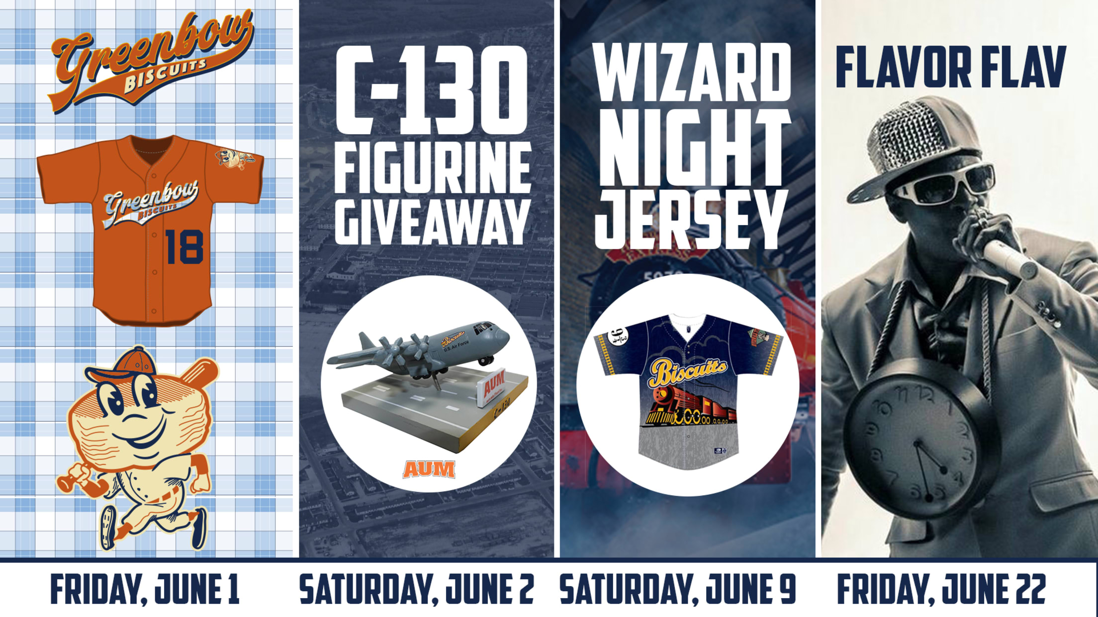 On June 2nd, the Biscuits will continue the yearlong celebration of Montgomery Aviation with "Flight Night" featuring a C-130 figurine giveaway presented by AUM.