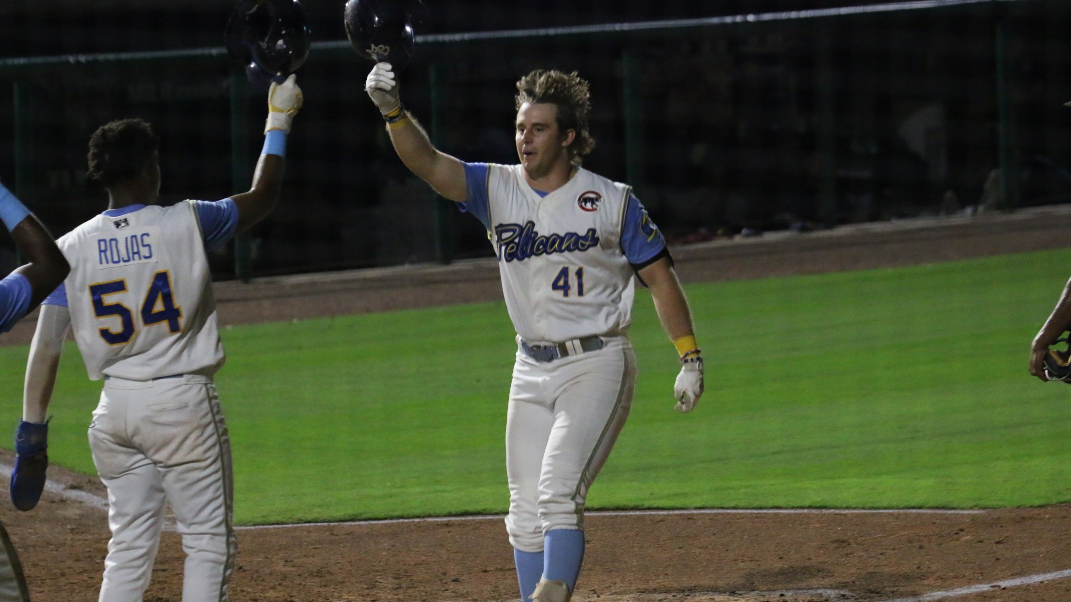 Kalmer added his ninth home run of the season in the bottom of the fifth with two on and two outs. On an 0-2 pitch. Kalmer launched his second home run of the week to the bleachers in left to extend the Pelicans’ lead to 4-0.