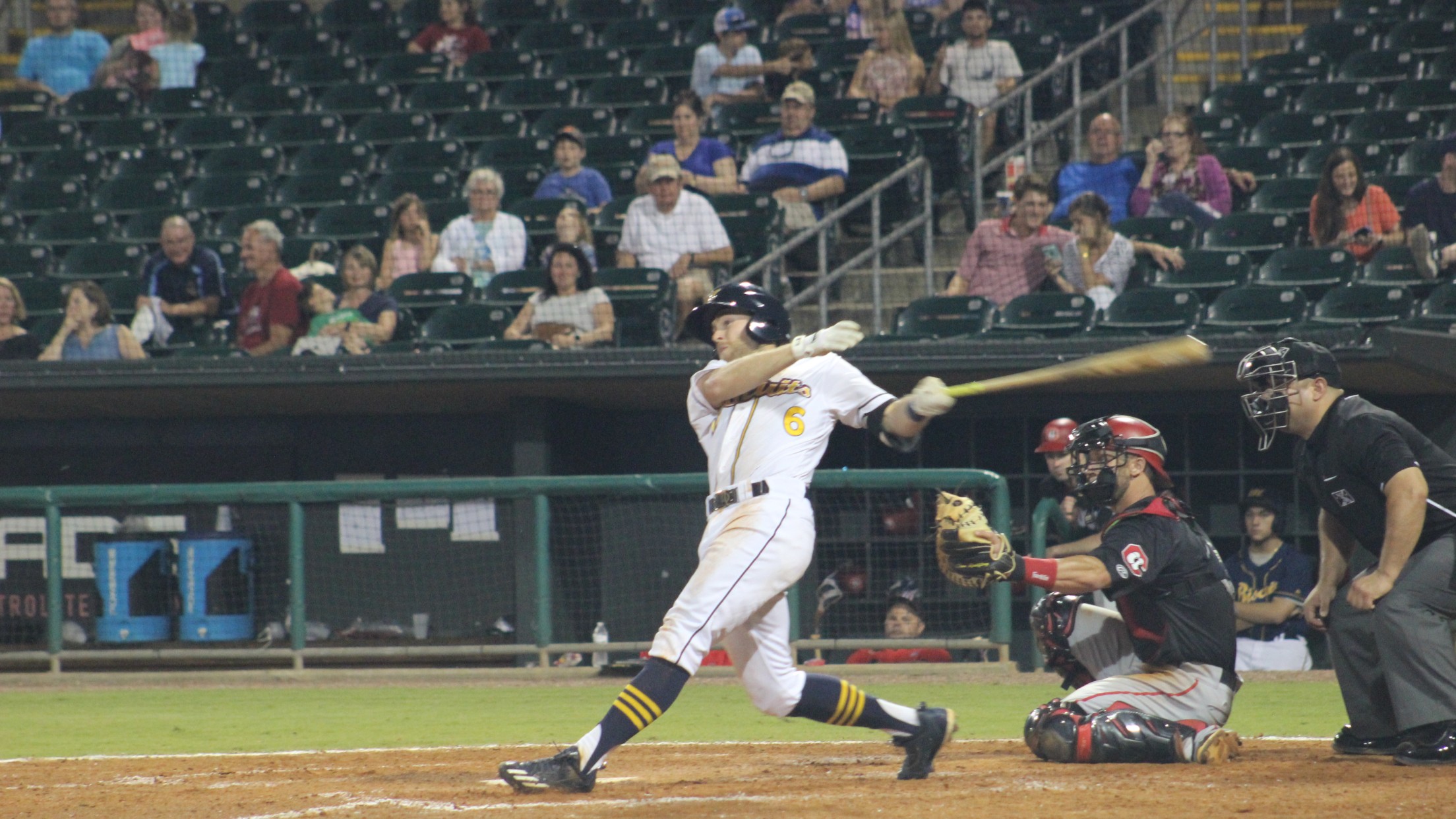 In the fourth, David Vidal hit a ground-rule double over the centerfield wall and then came around on a throwing error by Biscuits shortstop Velazquez, before Taylor Ard hit a sac fly in the subsequent at-bat to cut the lead in half, 4-2. Jacksonville would add one more run in the fifth to pull within one, 4-3, but then the Butter and Blue offense took over.