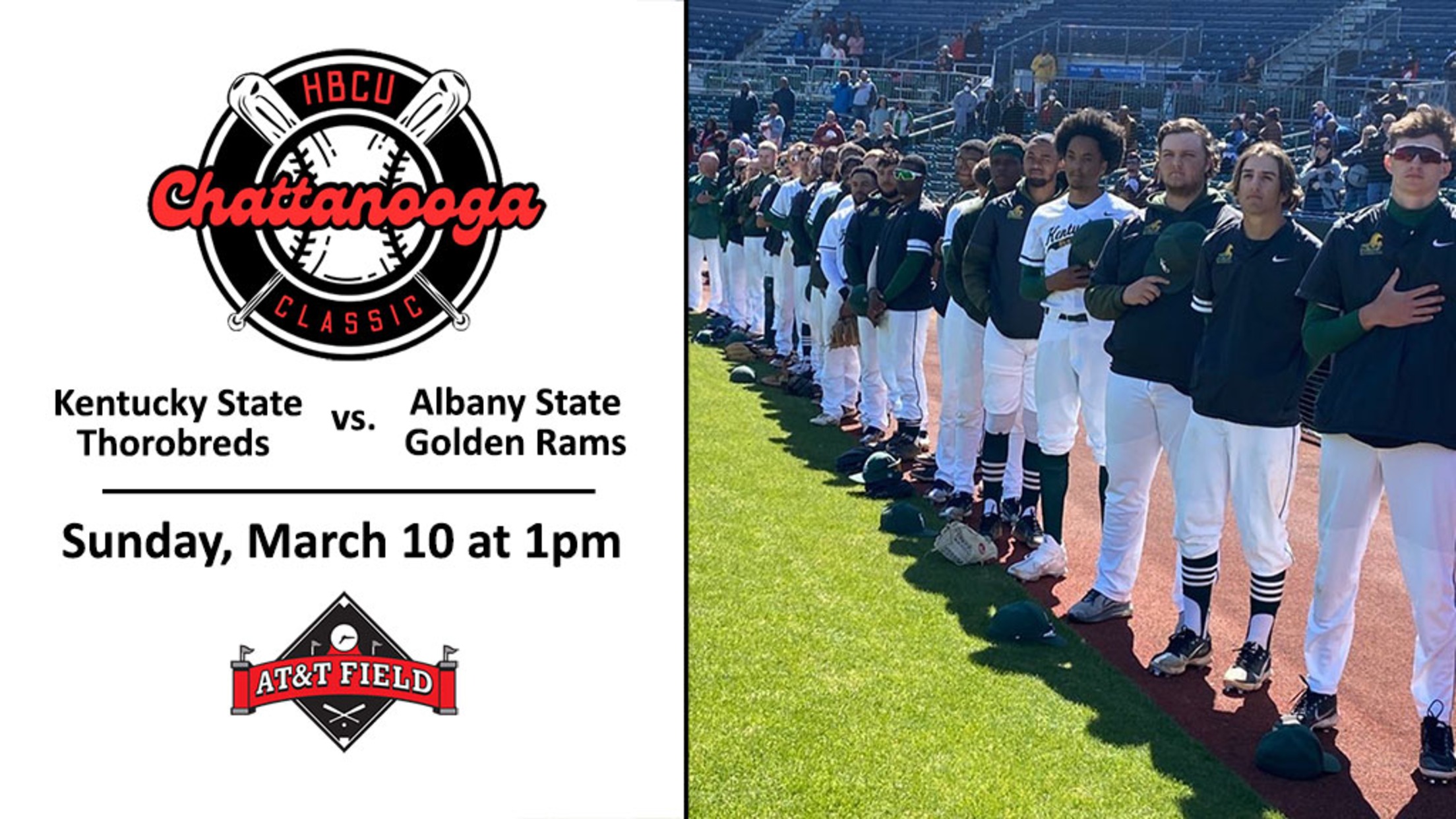 *CHATTANOOGA, Tenn. *– The Chattanooga Lookouts, Chattanooga Sports, a division of Chattanooga Tourism Co., and Brewer Media are excited to host the Chattanooga HBCU Classic at AT&T Field on Sunday, March 10 at 1:00 p.m. This one-day event features a 9-inning baseball game between two Historically Black Colleges and Universities, the Kentucky State Thorobreds and the Albany State Golden Rams. Gates for the event will open at noon.