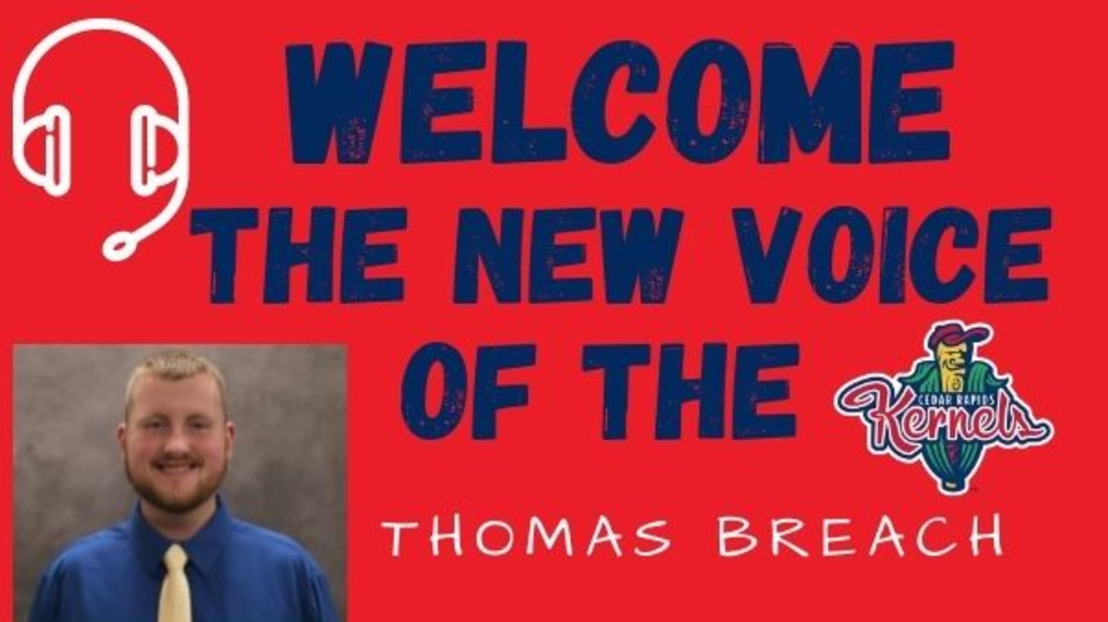 Kernels announce the new voice of the Kernels For Immediate Release: Contact: Jessica Fergesen (319) 896-7608 Cedar Rapids, IA – The Cedar Rapids have announced the hiring of Thomas Breach, the new voice of the Cedar Rapids Kernels. Breach joins the Kernels after spending three seasons just up Interstate 380