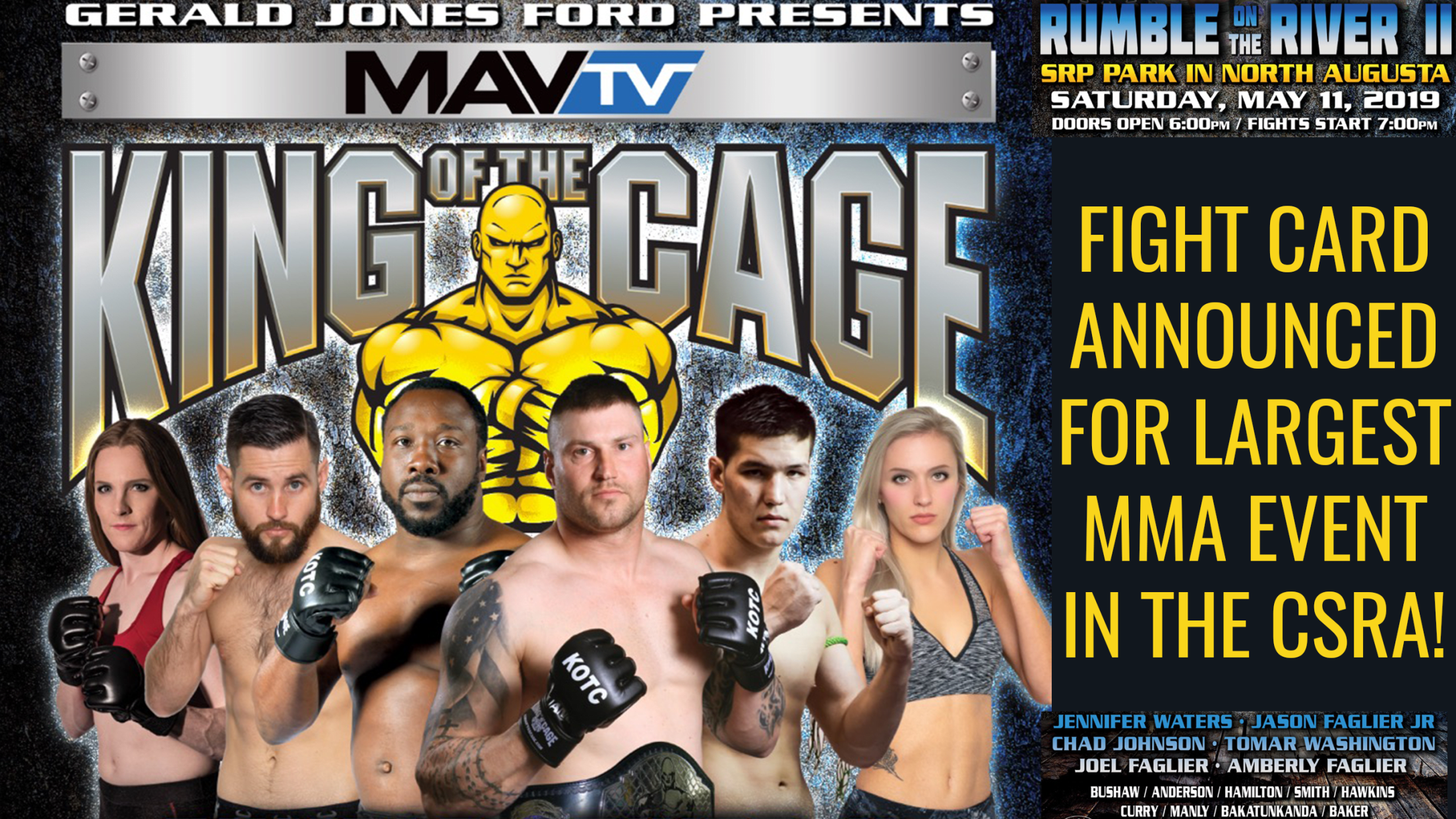 NORTH AUGUSTA, SC: The Augusta GreenJackets, South Atlantic League affiliate of the San Francisco Giants, are excited to announce the 2019 Fight Card for the 2019 "King of the Cage, Rumble on the River" on Saturday May 11th at 7:00 p.m (Gates Open at 6pm). The event will include 12