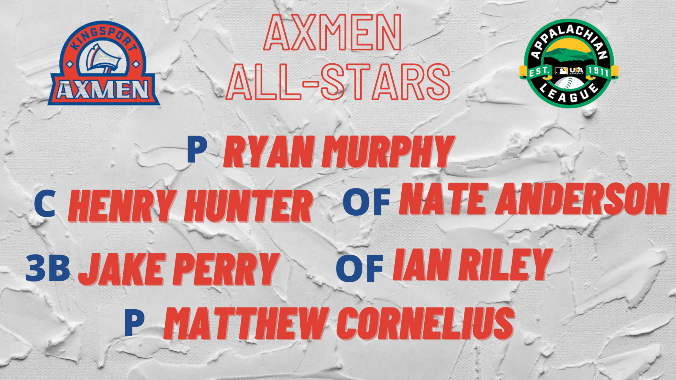 The players representing Kingsport as starters are pitcher Ryan Murphy (James Madison), catcher Henry Hunter (UAB), infielder Jake Perry (Minnesota), outfielder Ian Riley (Dallas Baptist) and outfielder Nate Anderson (Gardner-Webb). Pitcher Matt Cornelius (Pima Community College) was also selected.