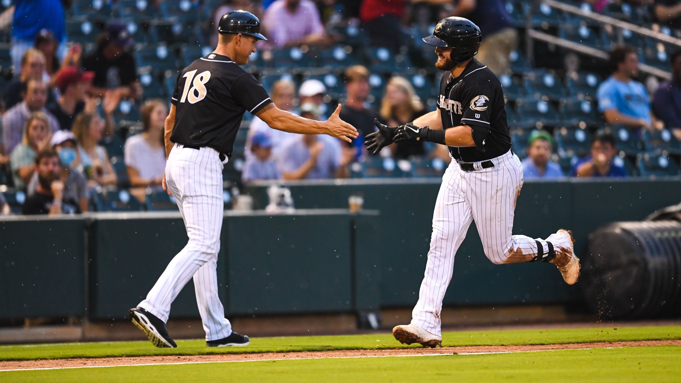(UPTOWN CHARLOTTE, NC) – Third baseman Jake Burger homered in his return to Uptown Charlotte, but the Charlotte Knights dropped the opening game against the Jacksonville Jumbo Shrimp by a score of 14-5 on Tuesday night from Truist Field. Burger, who was optioned to the Knights from the Chicago White