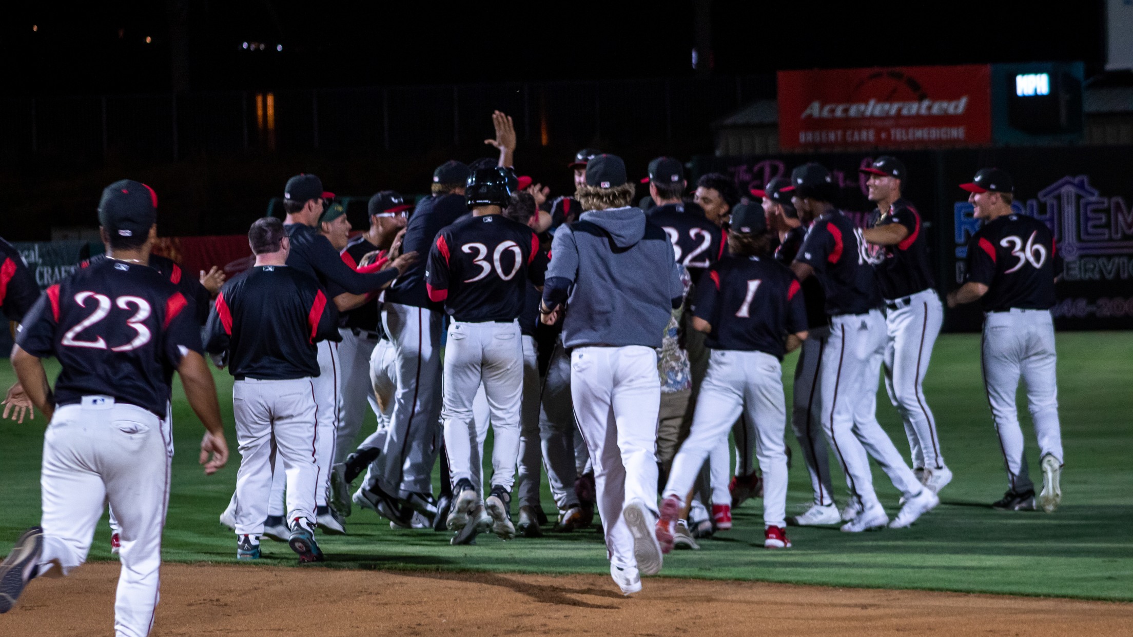 In the bottom of the 10th, a Hard Hat-earning bunt from Nick Vogt would push the runner to third. The 66ers would then intentionally walk Samuel Zavala, his second of the night, and Rosman Verdugo to load the bases with one out. Aquino, after making an impact all night long, would swagger his way to the plate looking to complete the comeback. It would take him all six pitches to do so but his 10th-inning walk-off served as the Storm's official 7th walk-off of the season and second against Inland Empire this season.