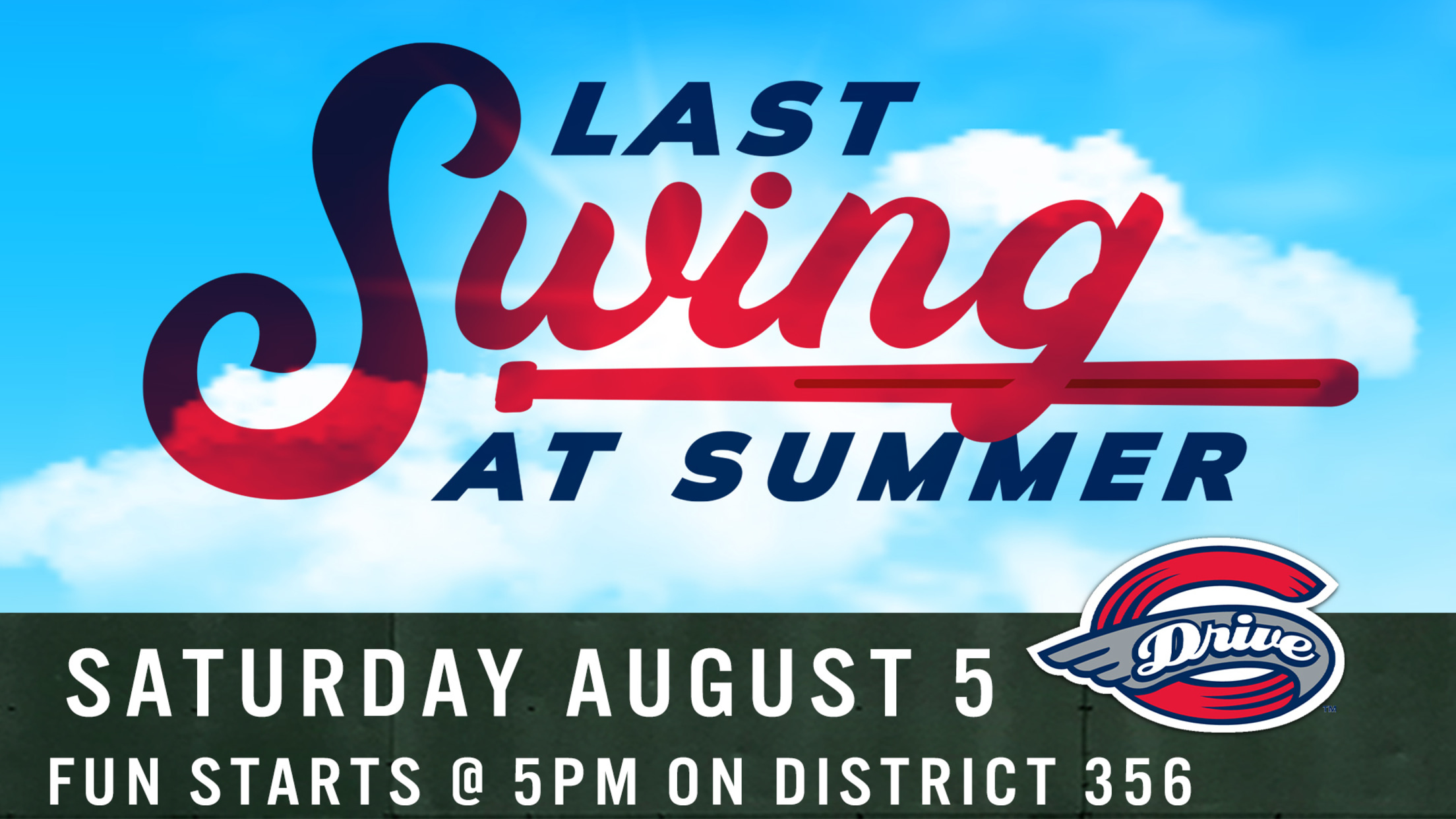 Greenville Drive vs. Rome Braves First Pitch: 7:05 p.m. | Gates: 6:00 p.m. | Saturdays on the District: 5:00 p.m. Get Tickets Here. Parting ways with the summer and accepting that the school has to begin again is part of life. So why not send summer off with a bang?
