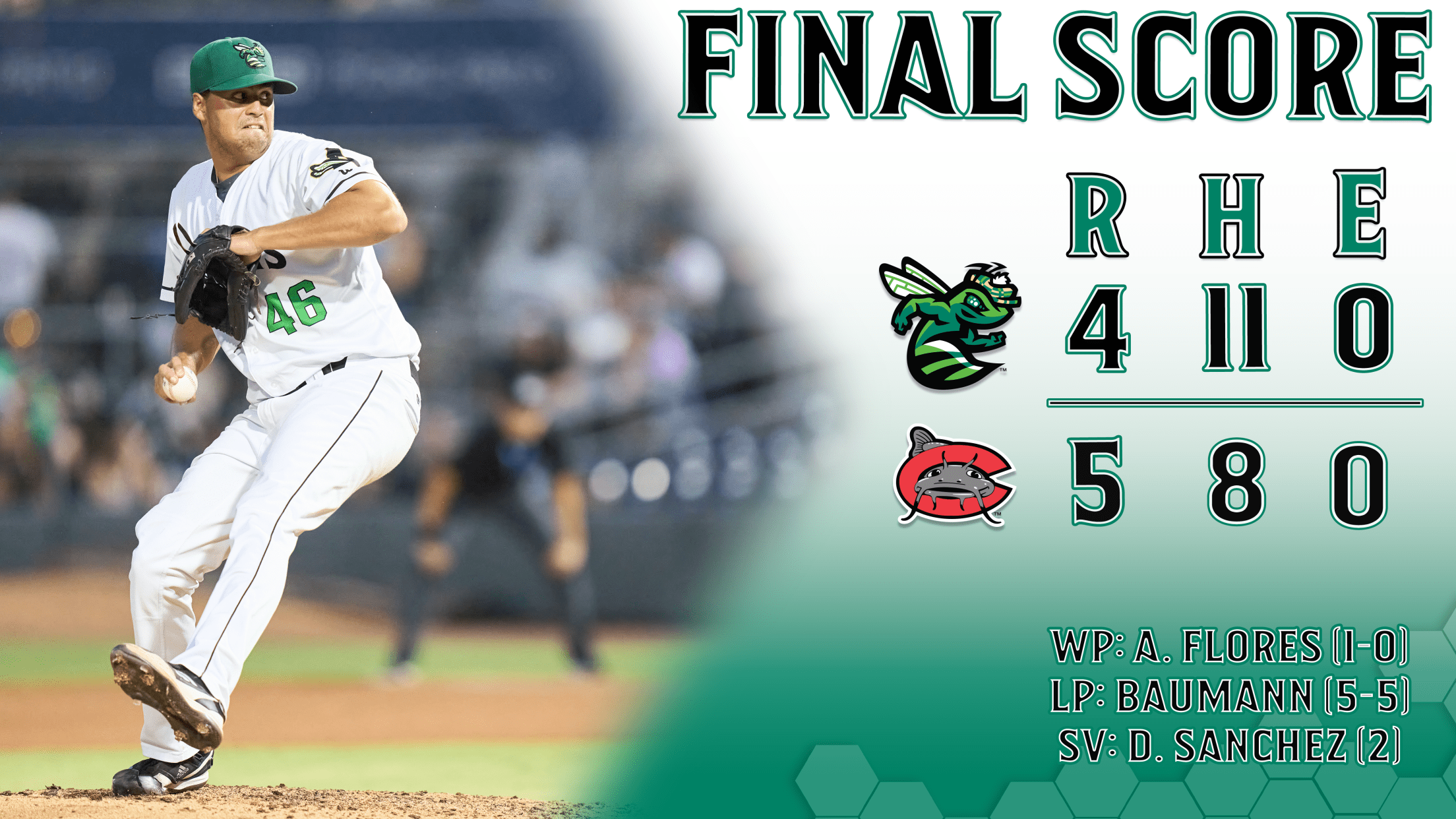 After the 2nd, neither side found any rhythm for the next 3.5 innings. Corniel went through the 4th without a hitch, and turned it over to Andrew Flores, who retired all 9 men he faced in a dominant display that earned him his first Single-A win.