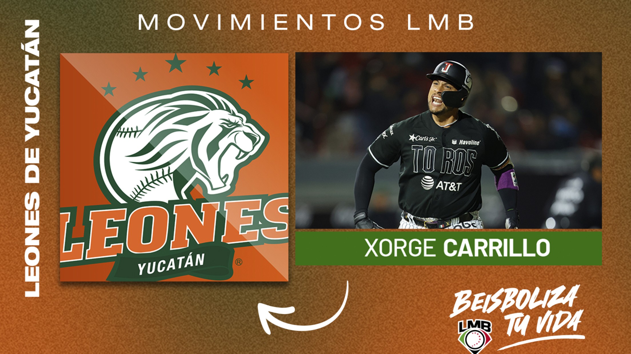 *Mérida, Yuc. (leones.mx | Depto. Medios y Comunicación) 22 de noviembre 2023- *Los Leones de Yucatán anuncian la llegada del estelar receptor Xorge Carrillo “El Factor X” procedente de Toros de Tijuana, en un cambio en el que Jake Thompson se unirá al conjunto fronterizo.