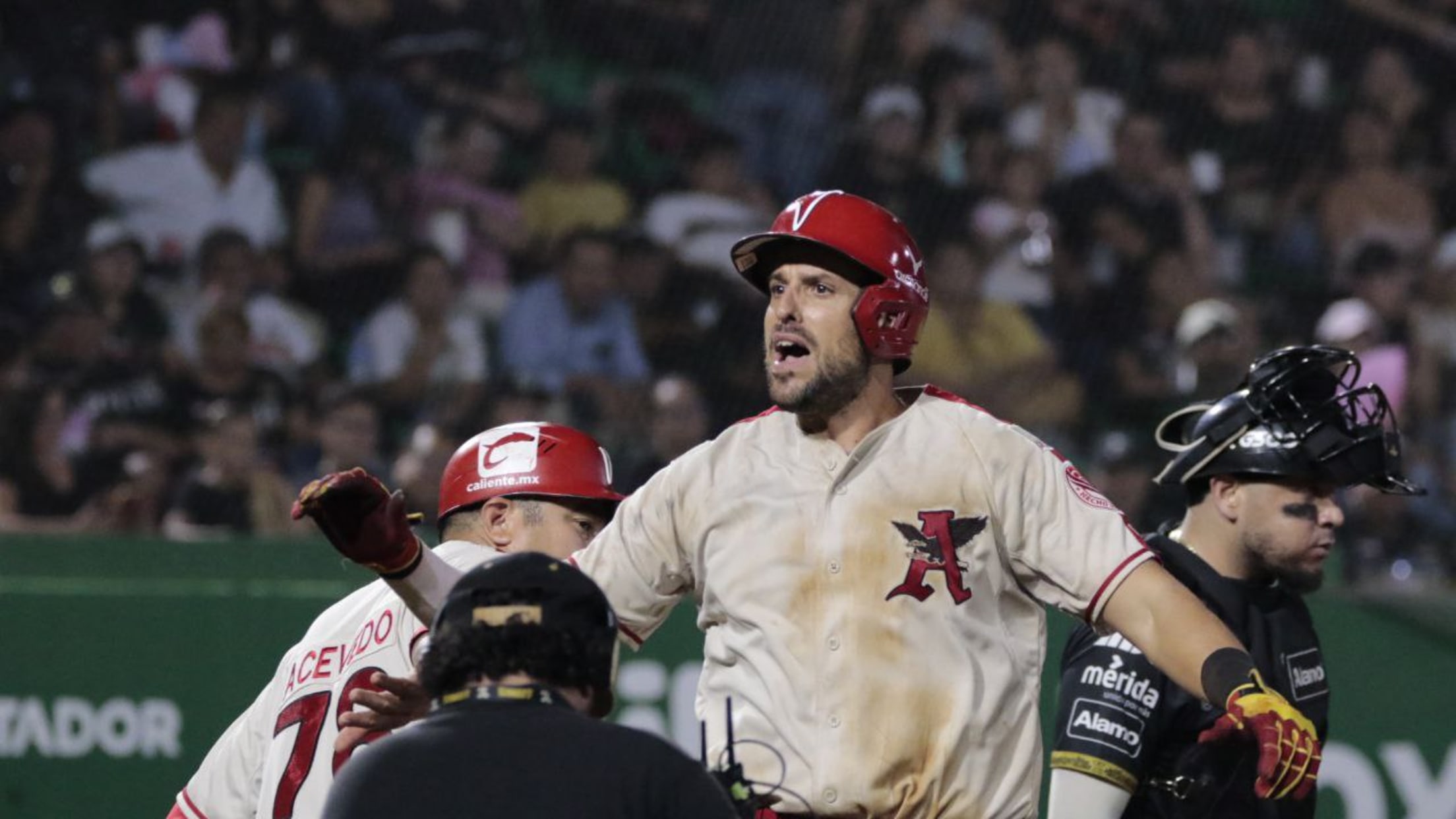 Mérida, Yuc. (leones.mx) 22 de agosto 2023.- ¡Juegazo de PlayOff! Ante más de 14 mil aficionados que vivieron un drama de 12 entradas, El Águila de Veracruz bateo dos cuadrangulares claves para vencer 4-2 a los Leones de Yucatán, este martes en el Parque Kukulcán Alamo.