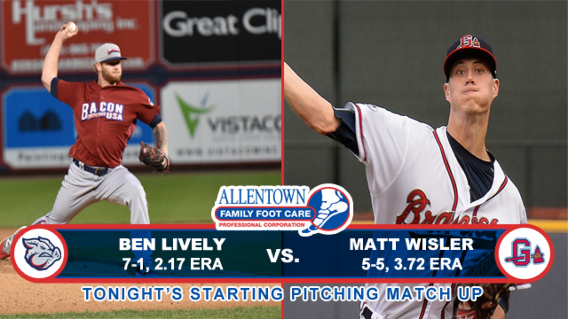 RHP Ben Lively makes his 11th start for the Pigs after taking the win in his last outing on July 13 against Rochester. The Pensacola, FL native tossed six scoreless innings surrendering just four hits while striking out eight in his return to the Pigs after seven starts with the Phillies.