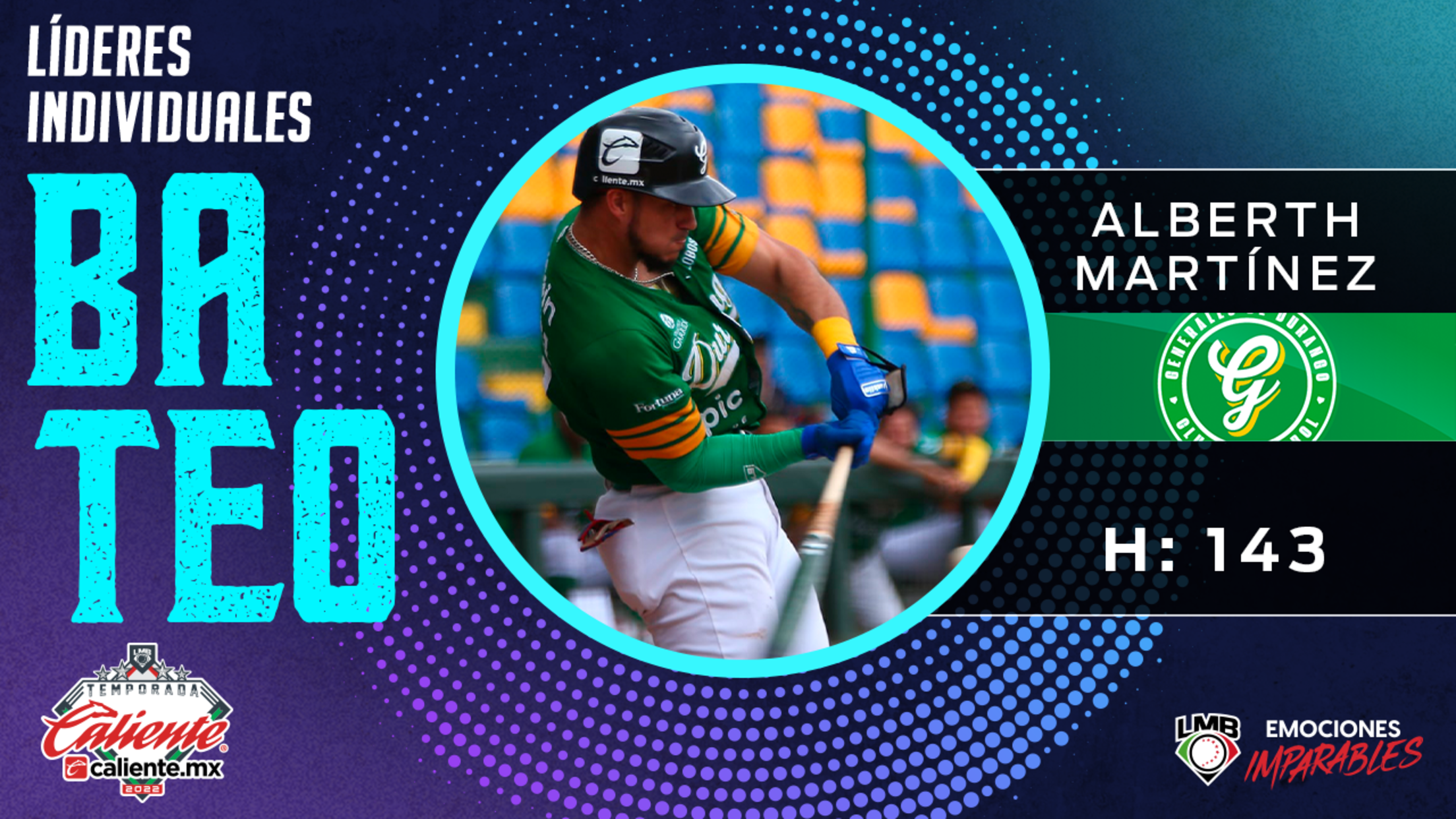 Ciudad de México (www.lmb.com.mx) 8 de agosto de 2022.- Alberth Martínez de Generales de Durango fue el pelotero que más veces hizo contacto con la pelota en la Temporada Caliente.Mx de la Liga Mexicana de Beisbol (LMB). El jardinero conectó 143 imparables a lo largo de la campaña. El oriundo