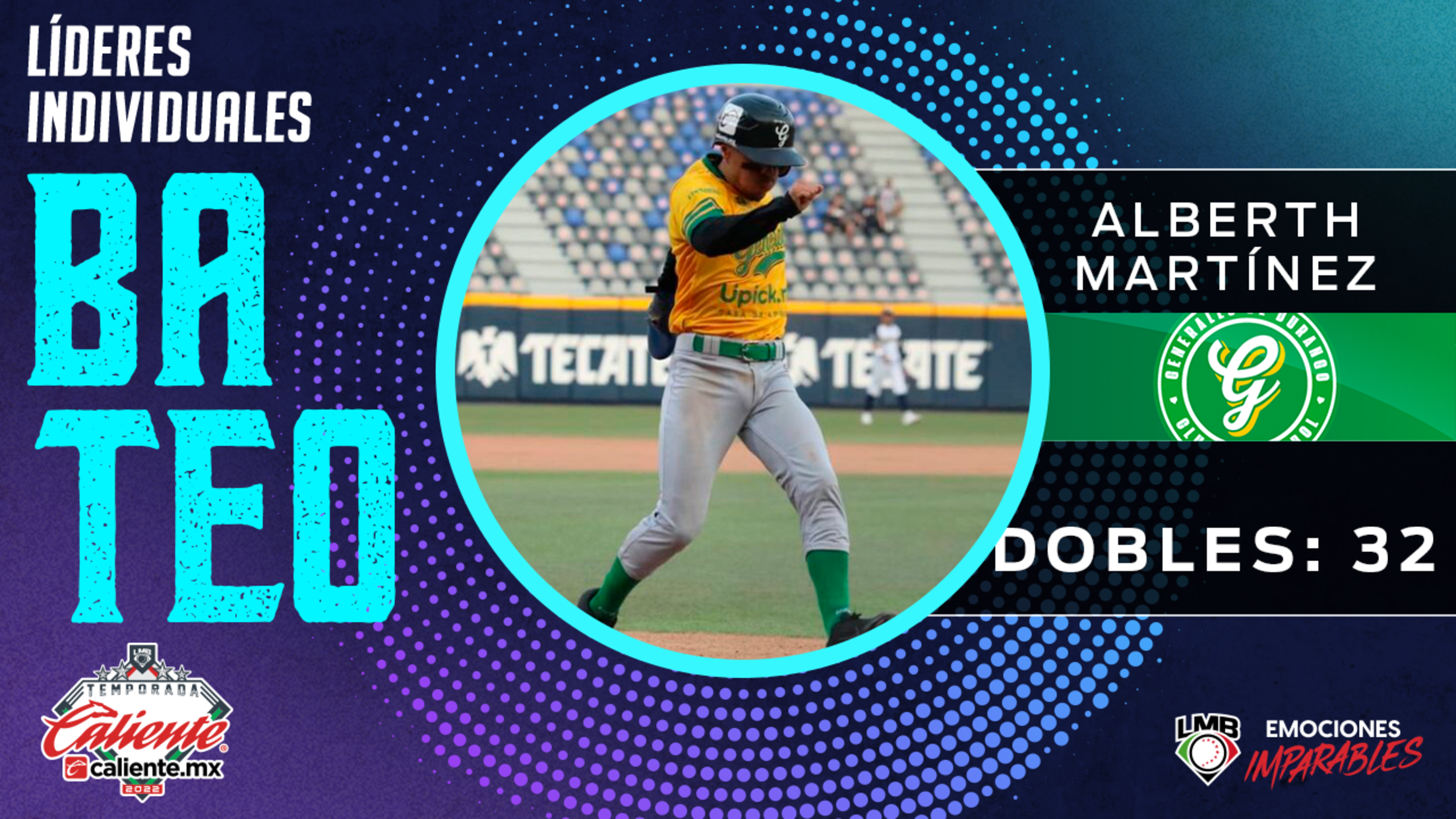 El nacido en Venezuela sumó 32 dobletes a lo largo de 2022 y dejó atrás a su compatriota Luis Sardiñas, quien inició el rol regular con Mariachis de Guadalajara y lo concluyó con Algodoneros de Unión Laguna, y acumuló 30 dobletes. En el tercer puesto quedó Henry Urrutia de Saraperos de Saltillo con 29.