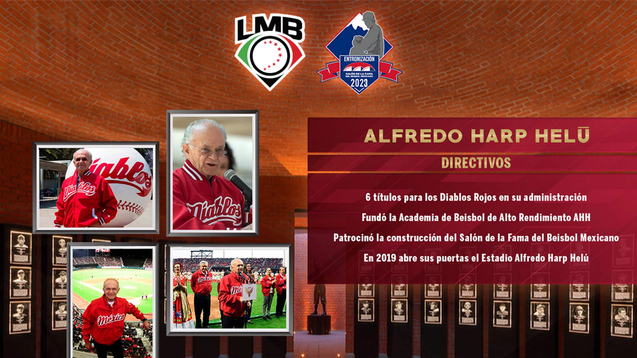 De esta manera Alfredo Harp Helú se convierte en el directivo número veinticuatro de la historia en ser exaltado al Salón de la Fama del Beisbol Mexicano. La lista la encabezó Jorge Pasquel y también incluye a Anuar Canavati, Lázaro Penagos, Horacio López Díaz, Alejo Peralta y Díaz Ceballos, Juan Ley Fong, Antonio Ramírez Muro, Arnulfo Rodríguez, Teodoro Mariscal, Alfonso Robinson Bours, Chara Mansur, Homobono Márquez, Jaime Pérez Avellá, Juan Manuel Ley, Eugenio Garza Sada, Pedro Treto Cisneros, José Maiz García, Roberto Mansur Galán, Mario Hernández Maytorena, Álvaro Lebrija, Arcadio Valenzuela, Arturo León Lerma y Cuauhtémoc Rodríguez.