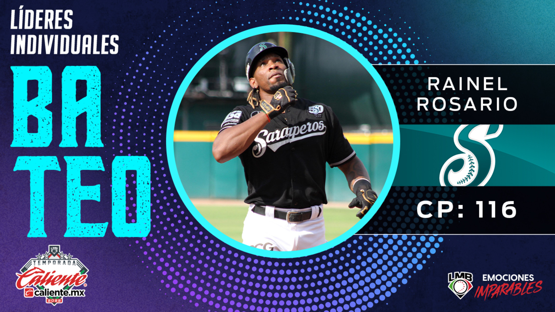 Además, Rosario es apenas el sexto bateador en la historia del equipo saltillense en liderar la LMB en carreras producidas: Rainel Rosario (2022) se une al exclusivo club de Saraperos que ya tenía como miembros a Gabriel Lugo (1972), Harold King (1978), James Collins (1980), Andrés Mora (1975, 1981-82) y Kit Pellow (2008).