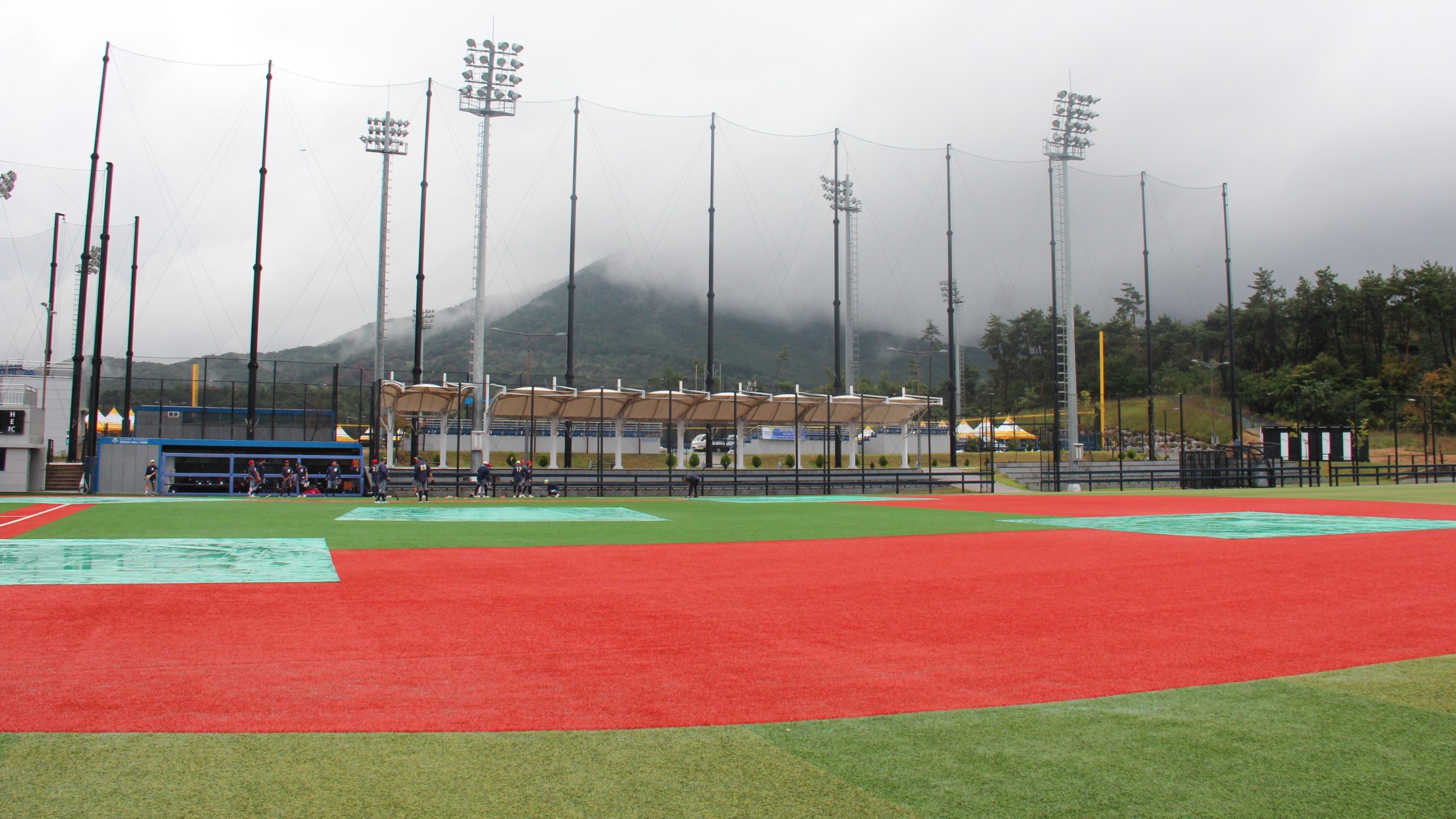 Gijang, Corea del Sur (www.lmb.com.mx / Leopoldo Ramírez Quezada) 15 de octubre de 2024.- La lluvia impidió el debut del equipo de Prospectos Estrellas de la Liga Mexicana de Beisbol en la Ulsan KBO Fall League, la liga de desarrollo de Corea del Sur. El juego ante los Fukuola SoftBank