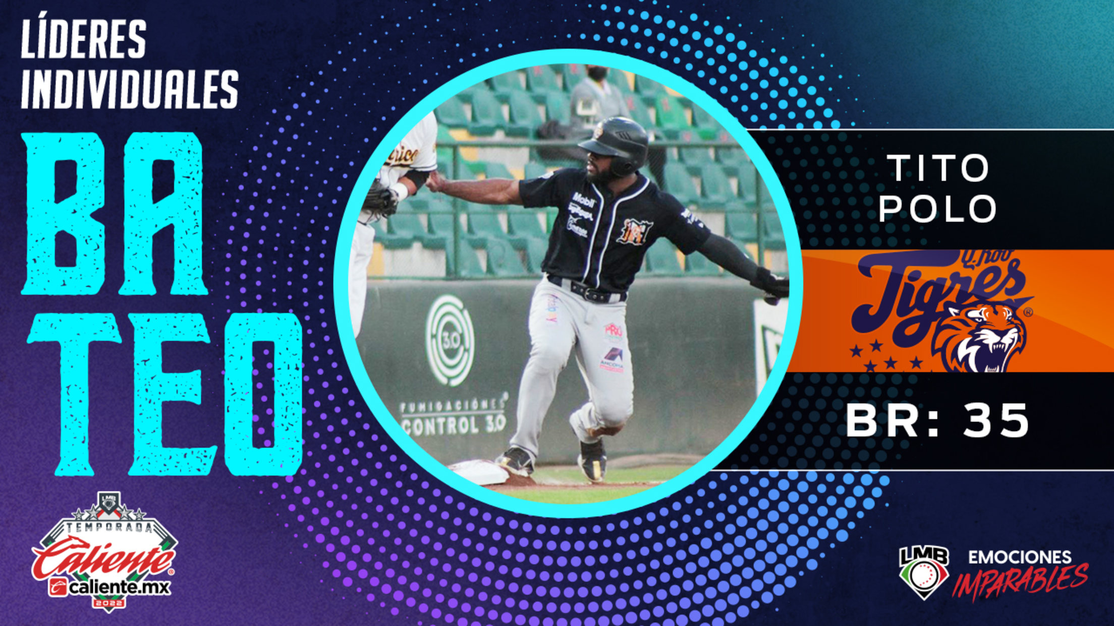 Ciudad de México (www.lmb.com.mx) 8 de agosto de 2022.- Tito Polo lideró la Liga Mexicana de Beisbol en el departamento de estafas con 35. Por segundo año consecutivo un colombiano de los Tigres de Quintana Roo encabeza la LMB en bases robadas, luego de que Reynaldo Rodríguez lo consiguiera en