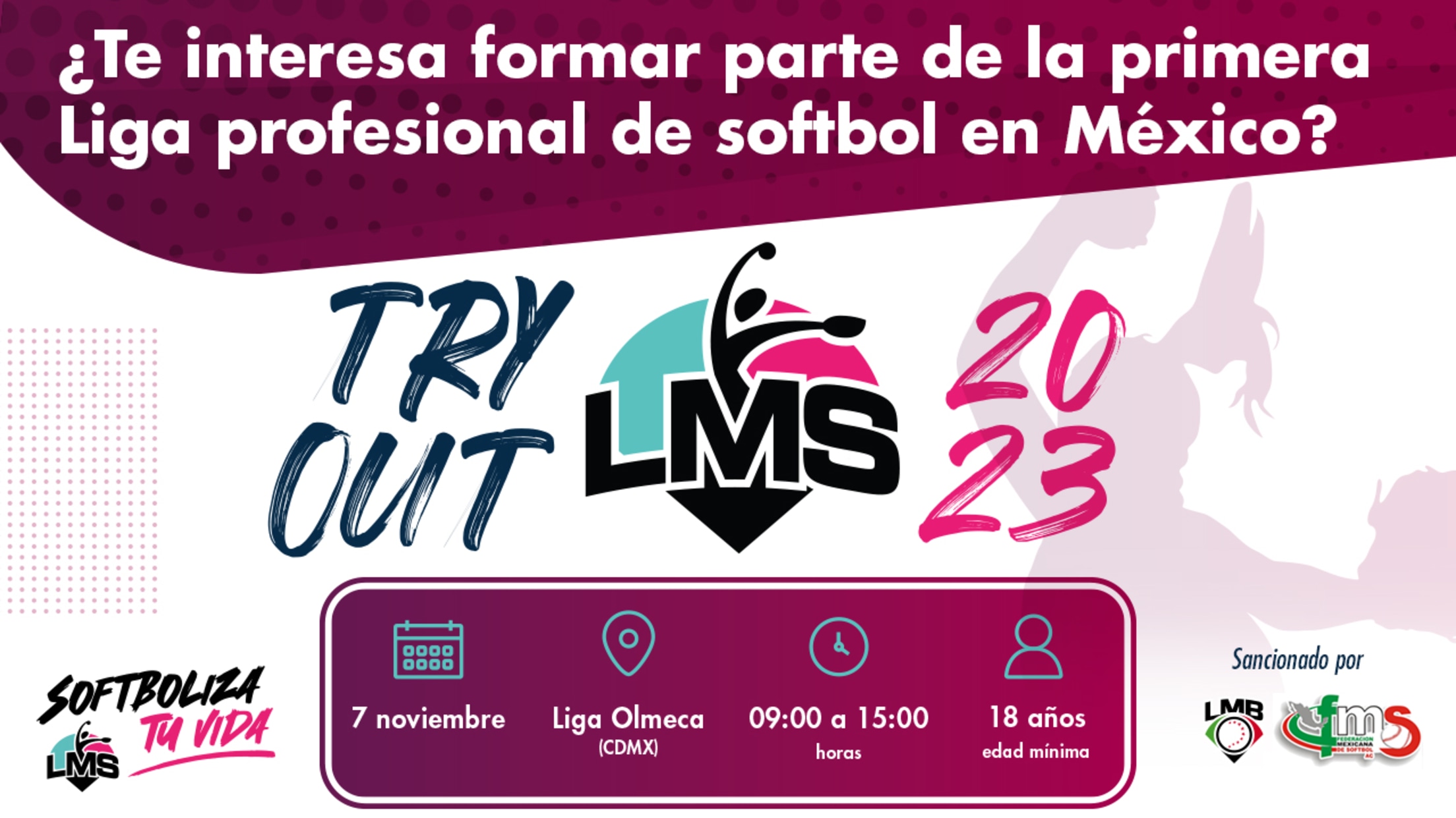Ciudad de México (www.lmb.com.mx) 25 de octubre de 2023.- La Liga Mexicana de Softbol (LMS) realizará un try-out el próximo martes 7 de noviembre en las instalaciones de la Liga Olmeca de la Ciudad de México. Este evento será sancionado por la Federación Mexicana de Softbol (FMS) en conjunto con la Liga Mexicana de Beisbol (LMB).