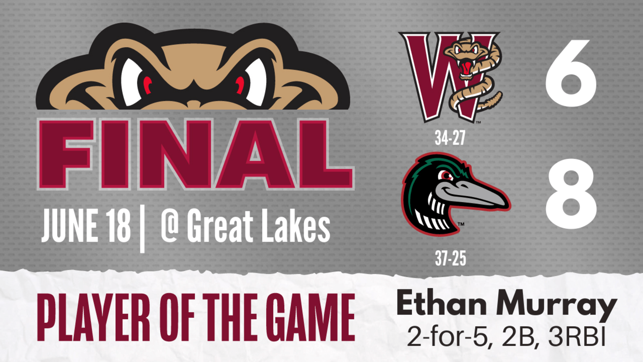 MIDLAND, MI – The Wisconsin Timber Rattler battled a red-hot Great Lakes Loons team all Saturday night at Dow Diamond. However, the Loons broke a 6-6 tie with a two-out, two-run double by Diego Cartaya to beat the Rattlers 8-6 and claim a victory for the ninth time in the last ten games.