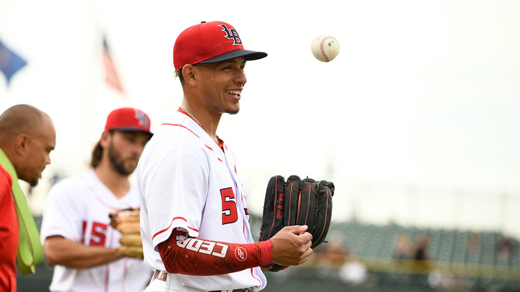 Chuckie Robinson makes a difficult play look easy behind the plate as he makes a sliding play catching a pop-up just in front of the Louisville dugout for the third out ending a great second career start for Brandon Williamson (1-1, 4.50).